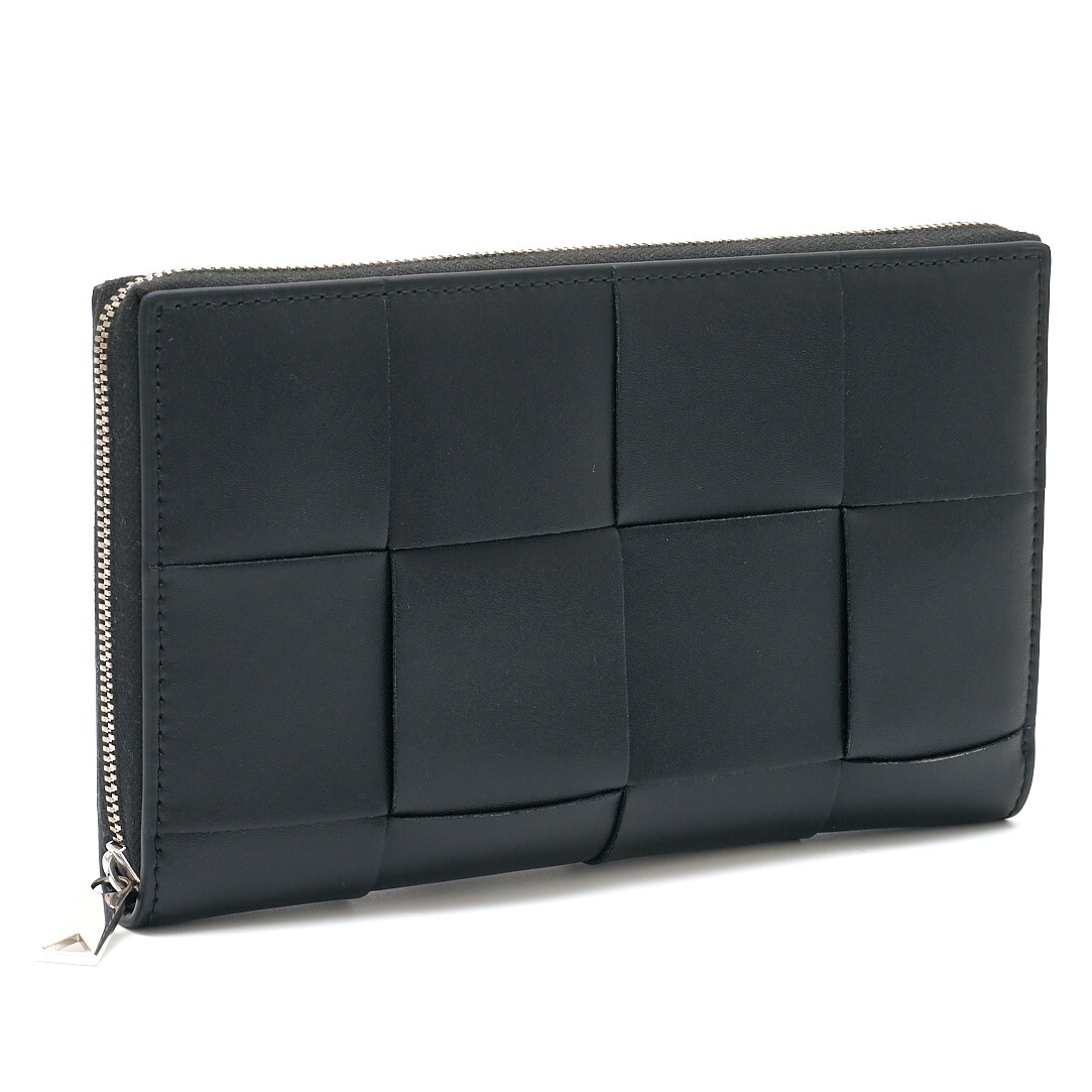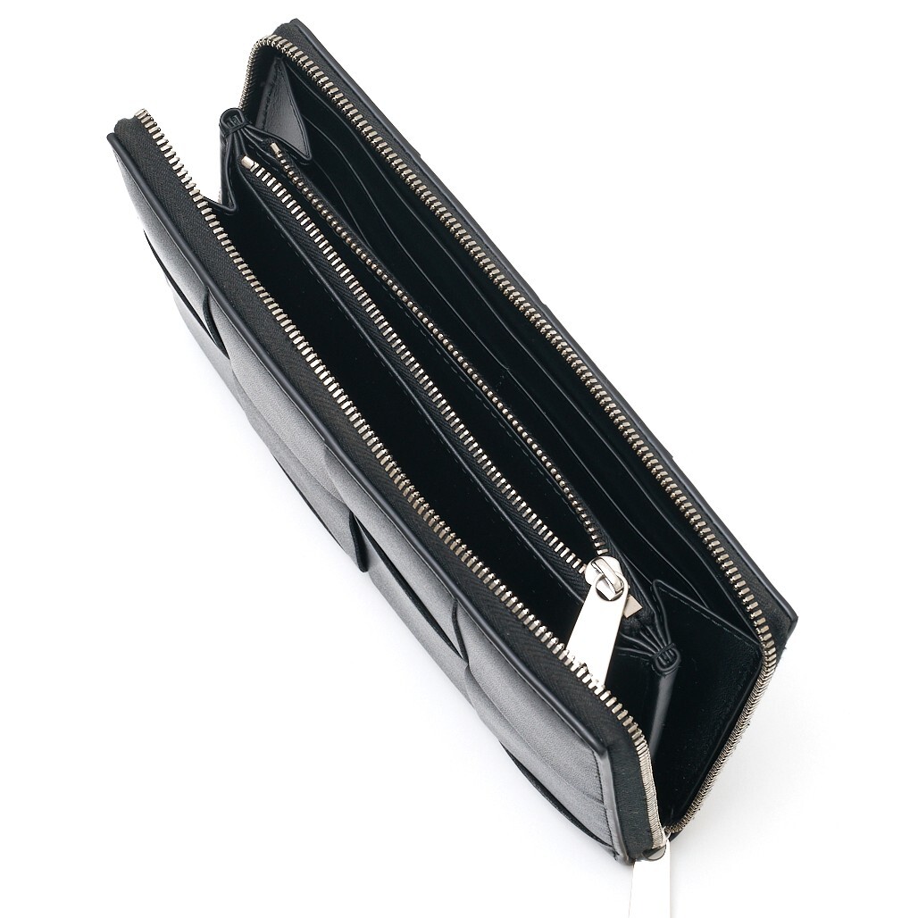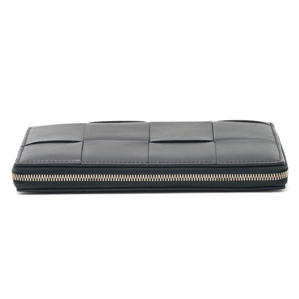 BOTTEGA VENETA ボッテガヴェネタ カセット ジップアラウンドウォレット 長財布 レザー ブラック×シルバー金具 メンズ レディース