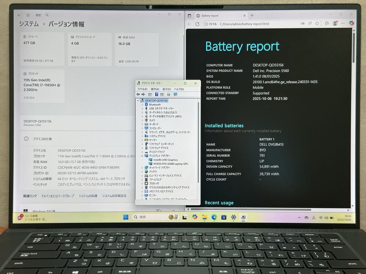 ・CPU: Core i7-11850H 2.5GHz, ターボブースト: 4.8GHz