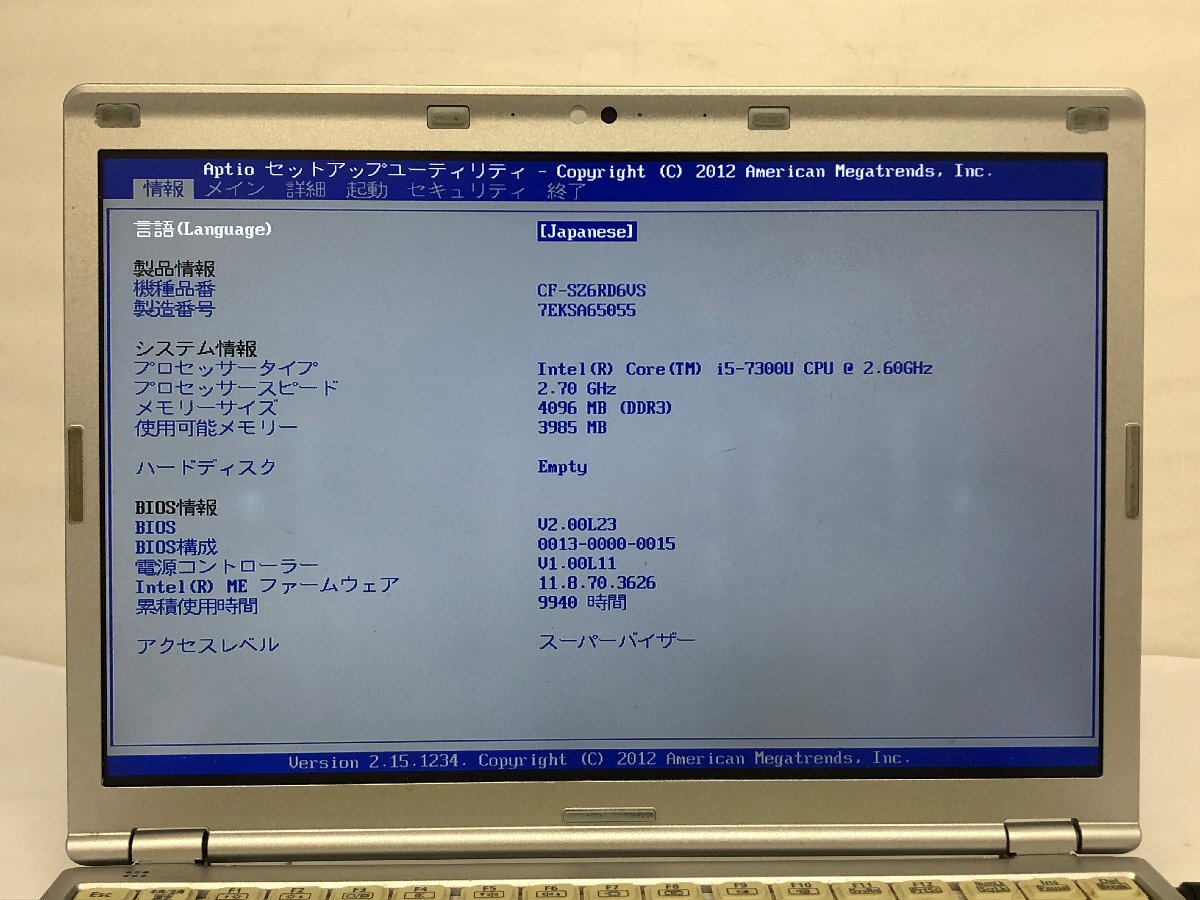 ジャンク/ Panasonic CF-SZ6RD6VS Intel Core i5-7300U メモリ4.1GB ストレージ無し 【K22377】