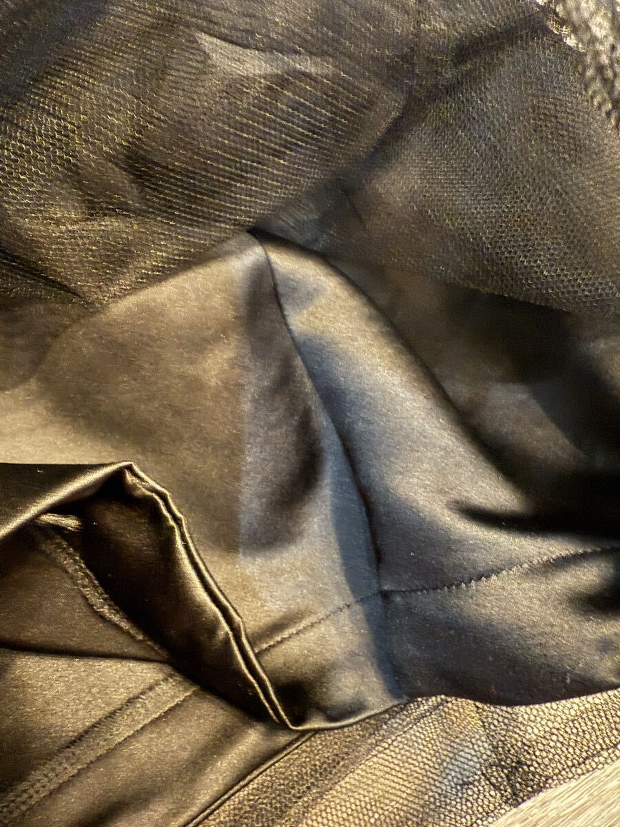 張りのあるメッシュを二枚重ねベースはしっかりとしたサテンです。