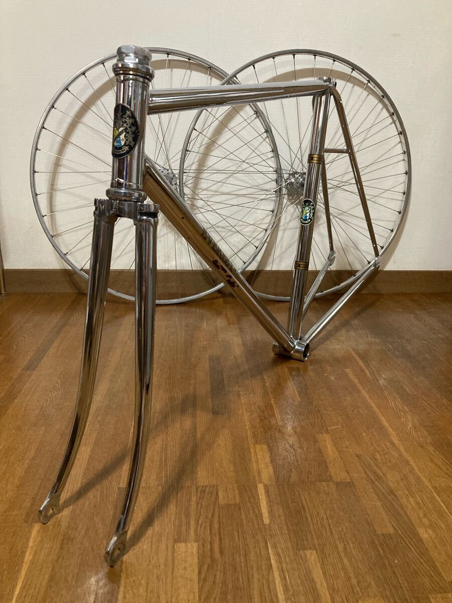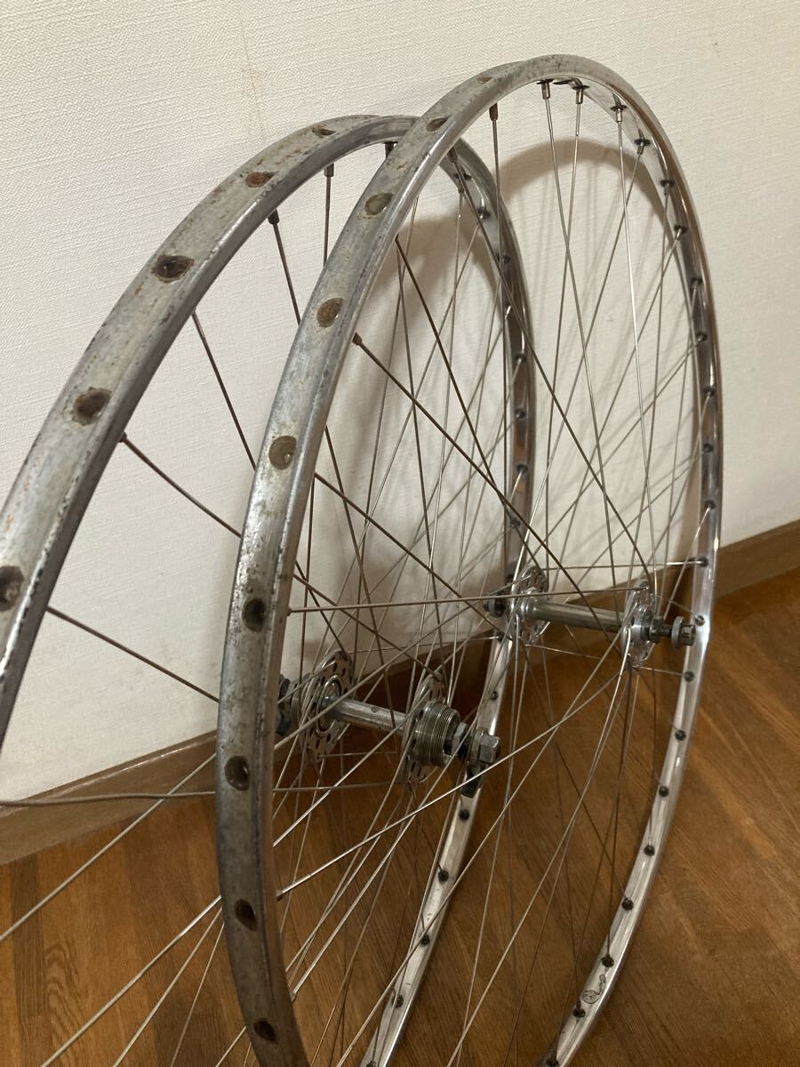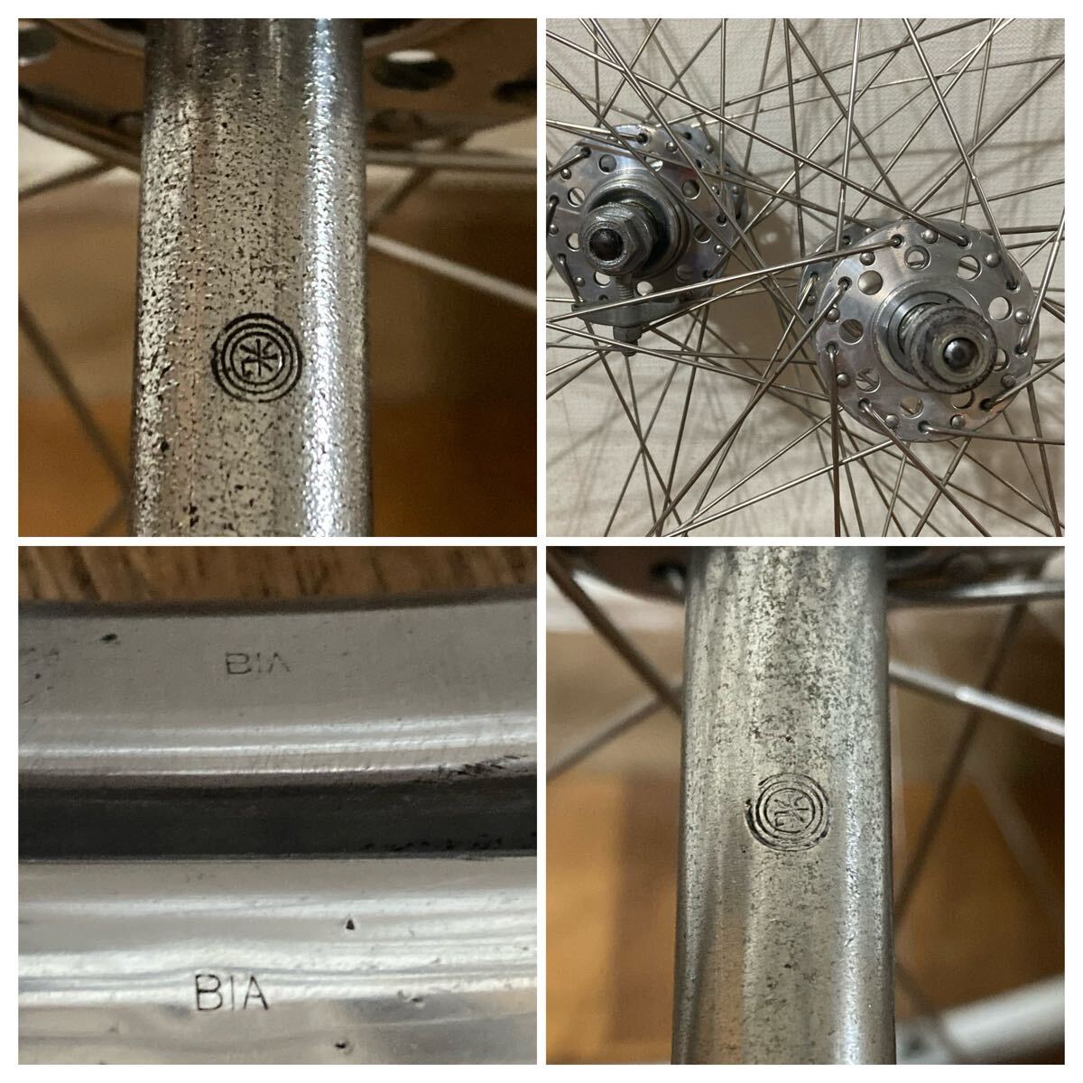 即決 希少 エバレスト 土屋製作所 EVEREST 520 前100 後110 26.8 メッキ 競輪 ピスト ヘッドパーツ付 75年製? ホイールセット 三光舎