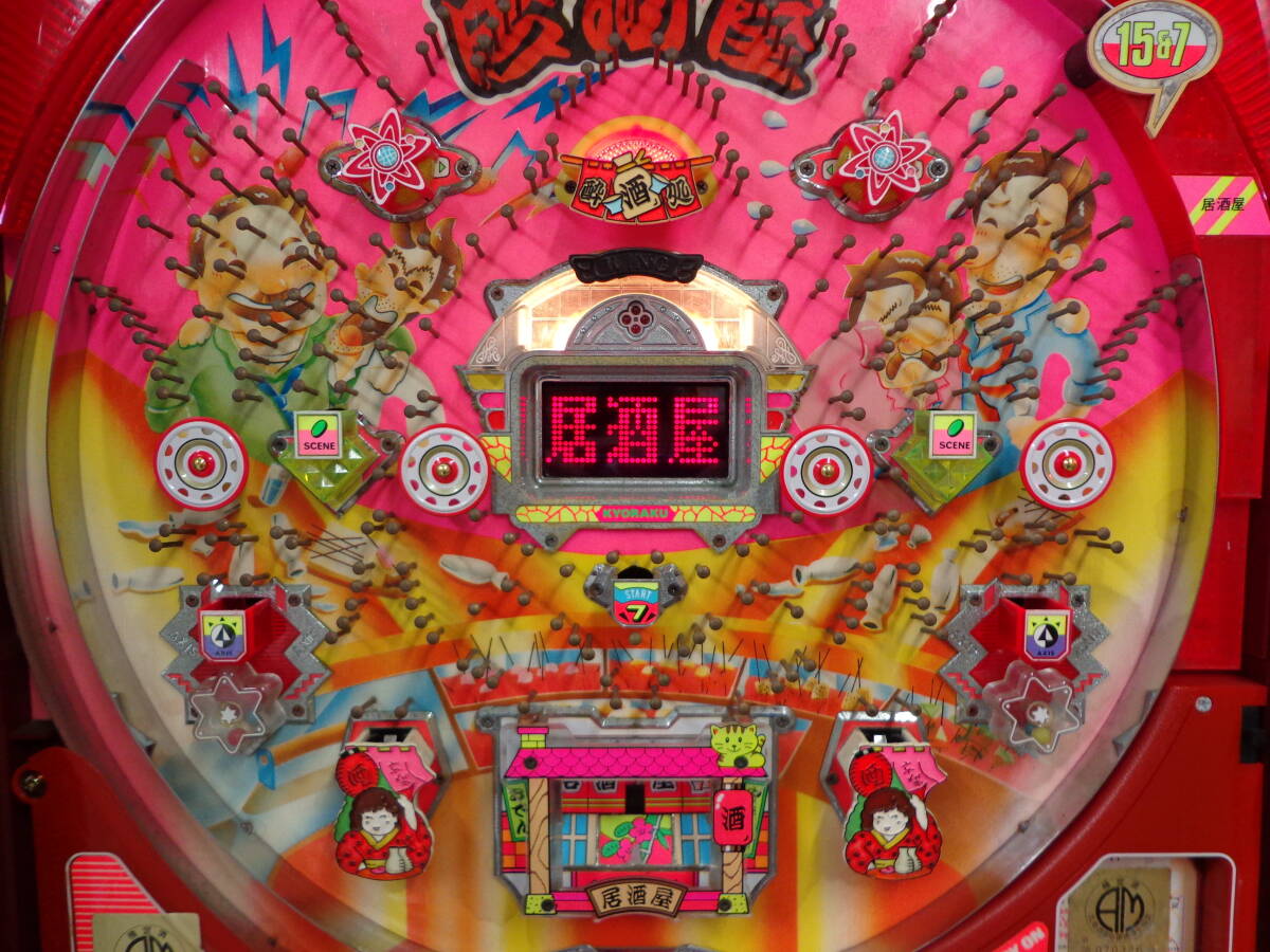 京楽のレトロパチンコ、居酒屋の実機(非循環払い出しタイプ24V)です。