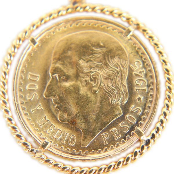 Aランク【ジュエリー】コイントップ/メキシコ2.5ペソ/金貨/K21.6YG/K18YG/3.0g/ドスYメディオ