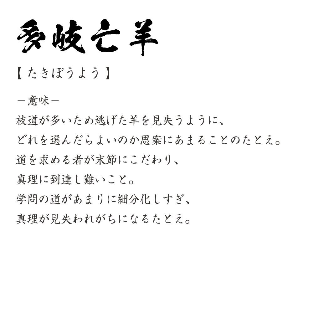 多岐亡羊 ( たきぼうよう ) 書道家が書く デザイン Tシャツ 【 四文字熟語 】 メンズ レディース キッズ