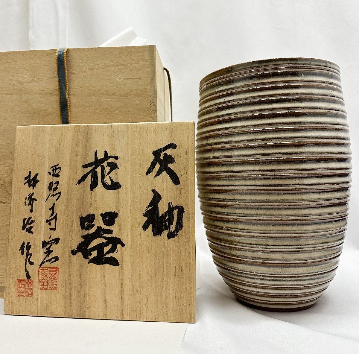 未使用 熊本 西照寺窯 林清治 灰 花器 花瓶 高さ29cm 共箱付 | |||