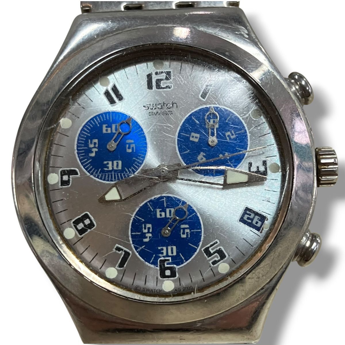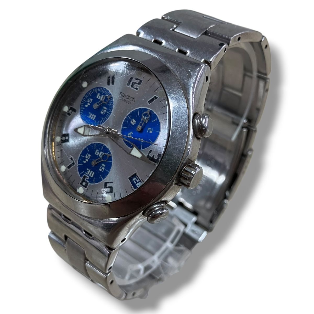 【60】250919-7716-3028 SA300 【1000円スタート】swatch スウォッチ アイロニー 文字盤シルバー 腕周り最大19cm メンズ 腕時計 現状品