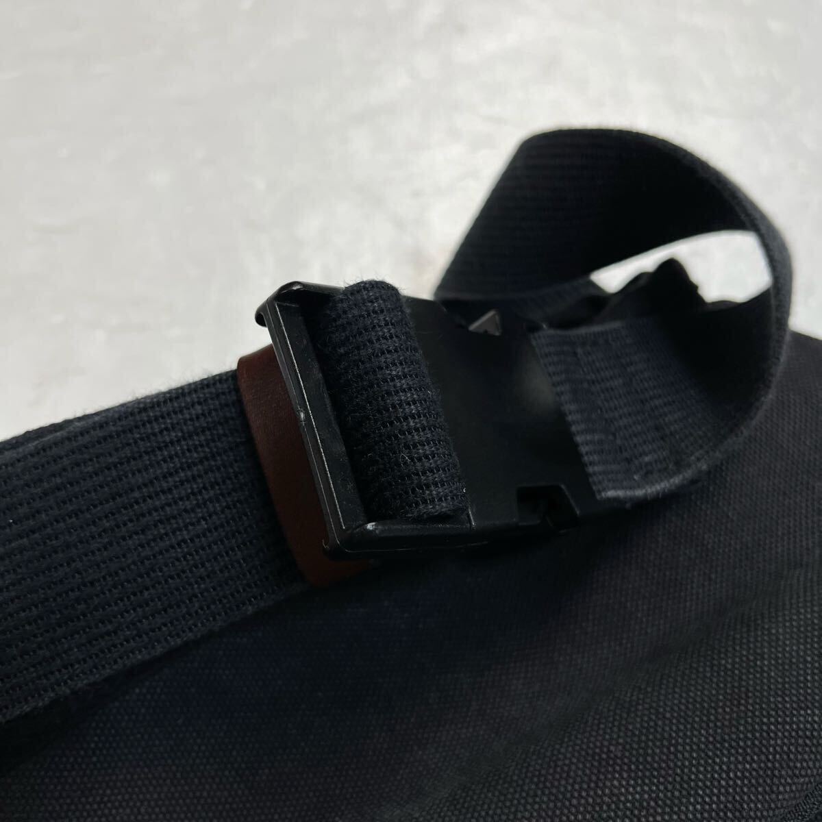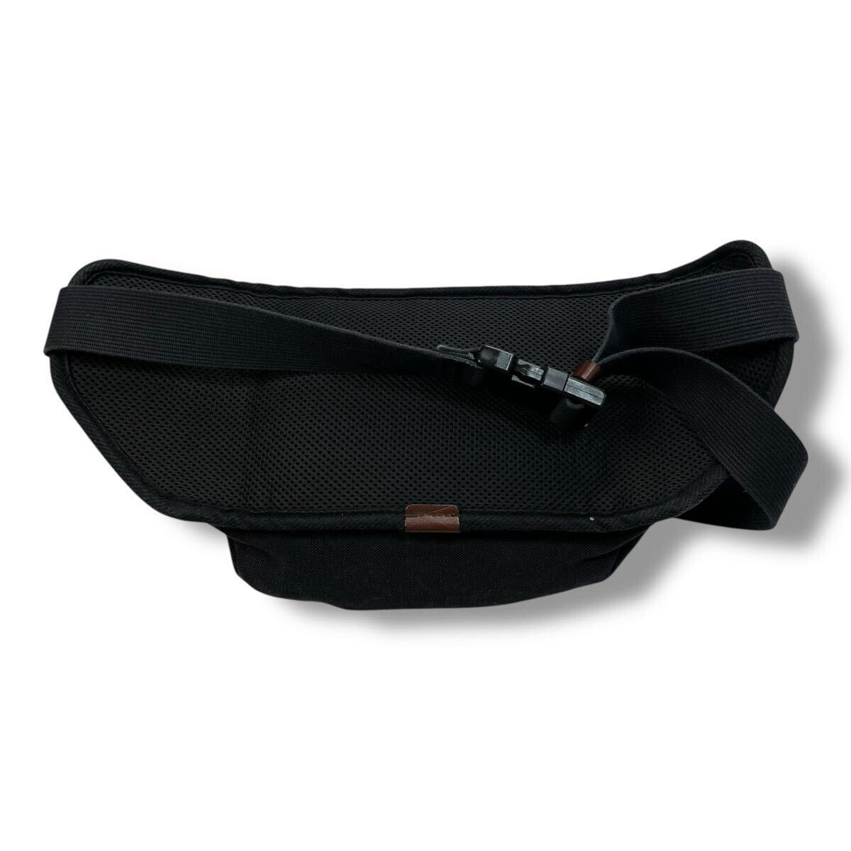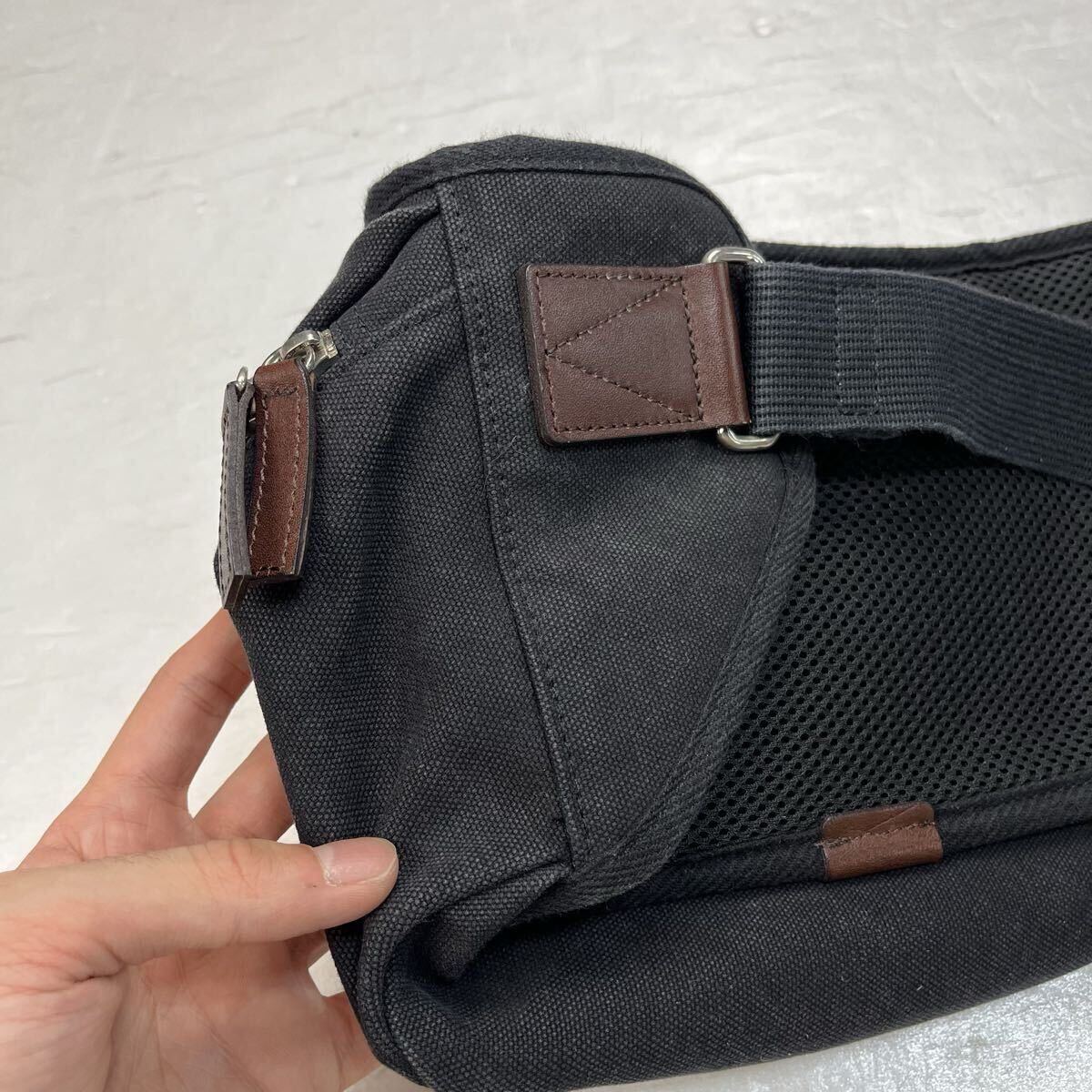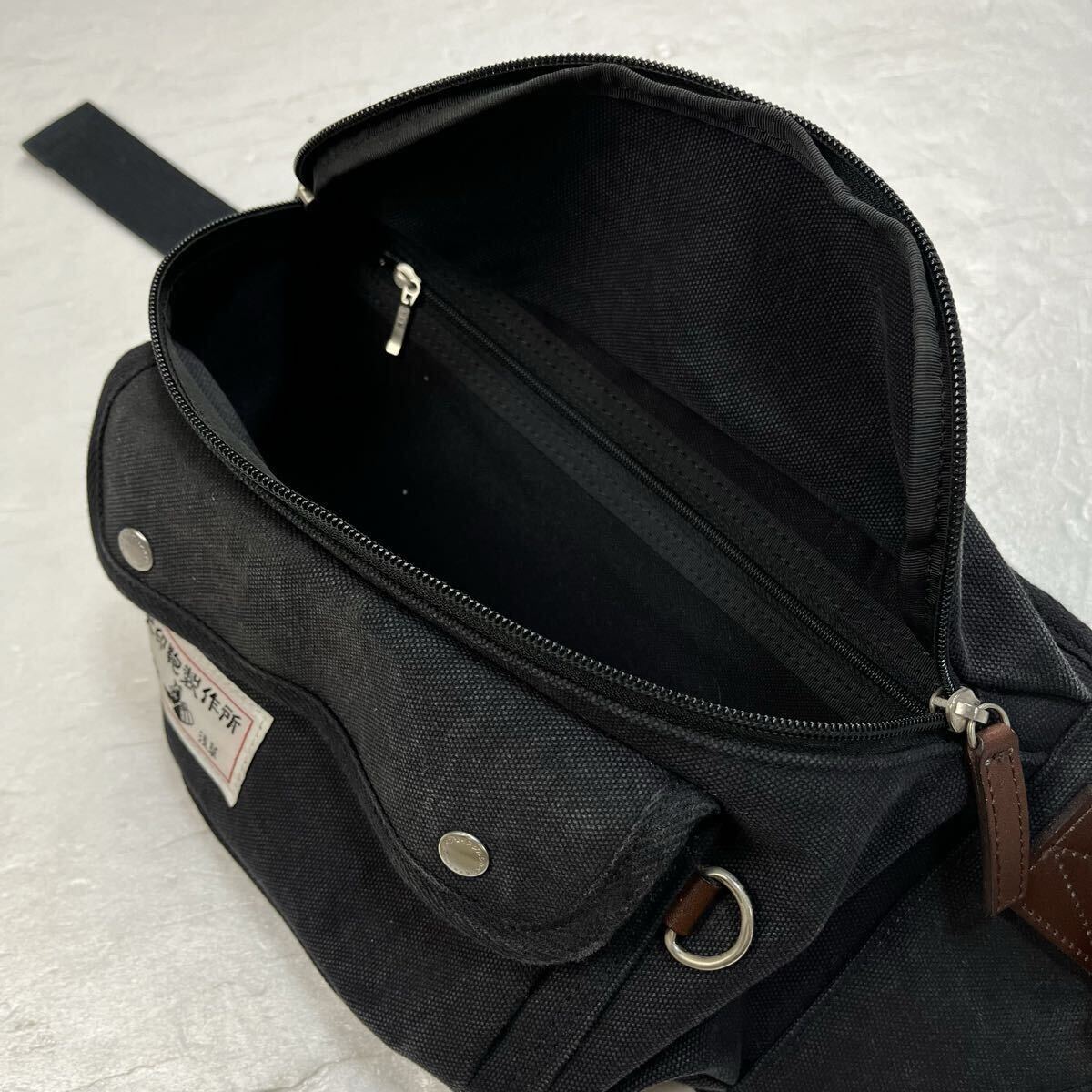 (TK1007)【希少】 犬印鞄製作所 ストーンウォッシュ帆布 ウエストバッグ ボディバッグ ブラック コットン キャンバス レザー 浅草 国産