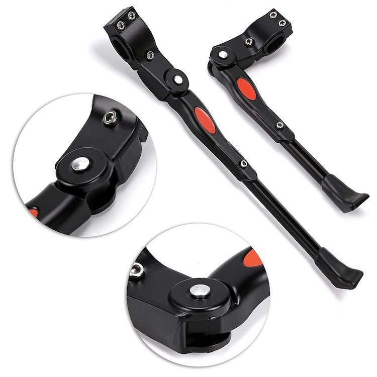 ◆自転車用サイドスタンド 20〜28インチ車用 軽量アルミ合金製 重さ280g 高さ調節可 滑り止め付 耐荷重20kg 取付簡単 ロードバイク MTB クロスバイクなどに最適 汎用キックスタンド 白黒2色あり CKSTD345/ブラック