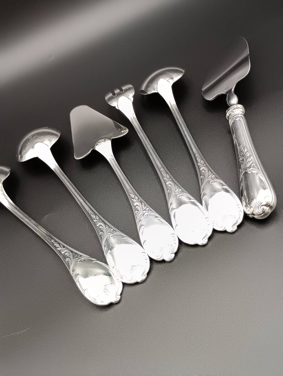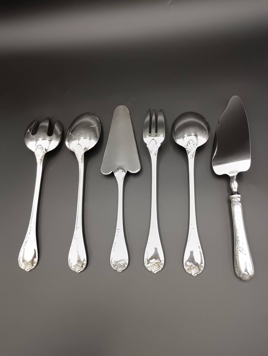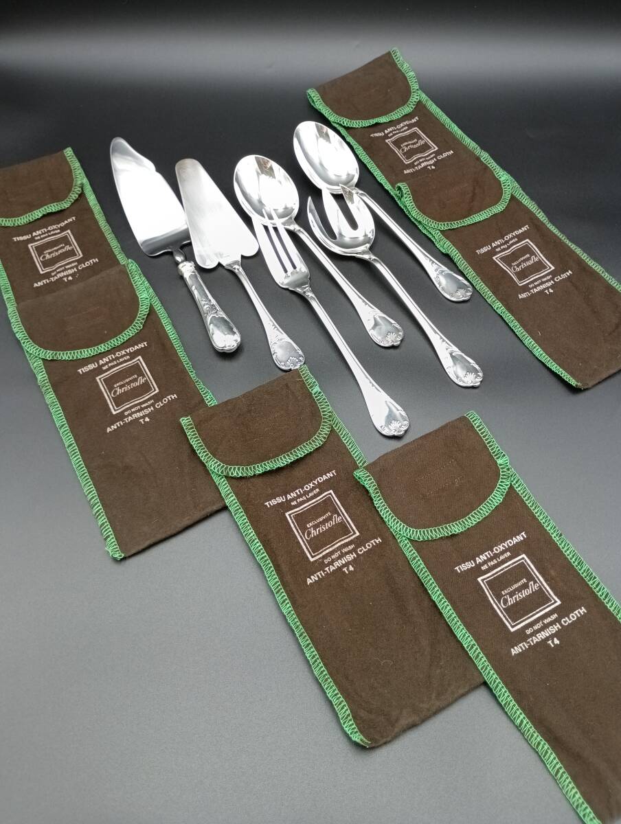 クリストフル マルリー 刻印 カトラリーセット サラダ ケーキ 取り分け 高級食器 1円スタート 大きい 専用収納 Christofle