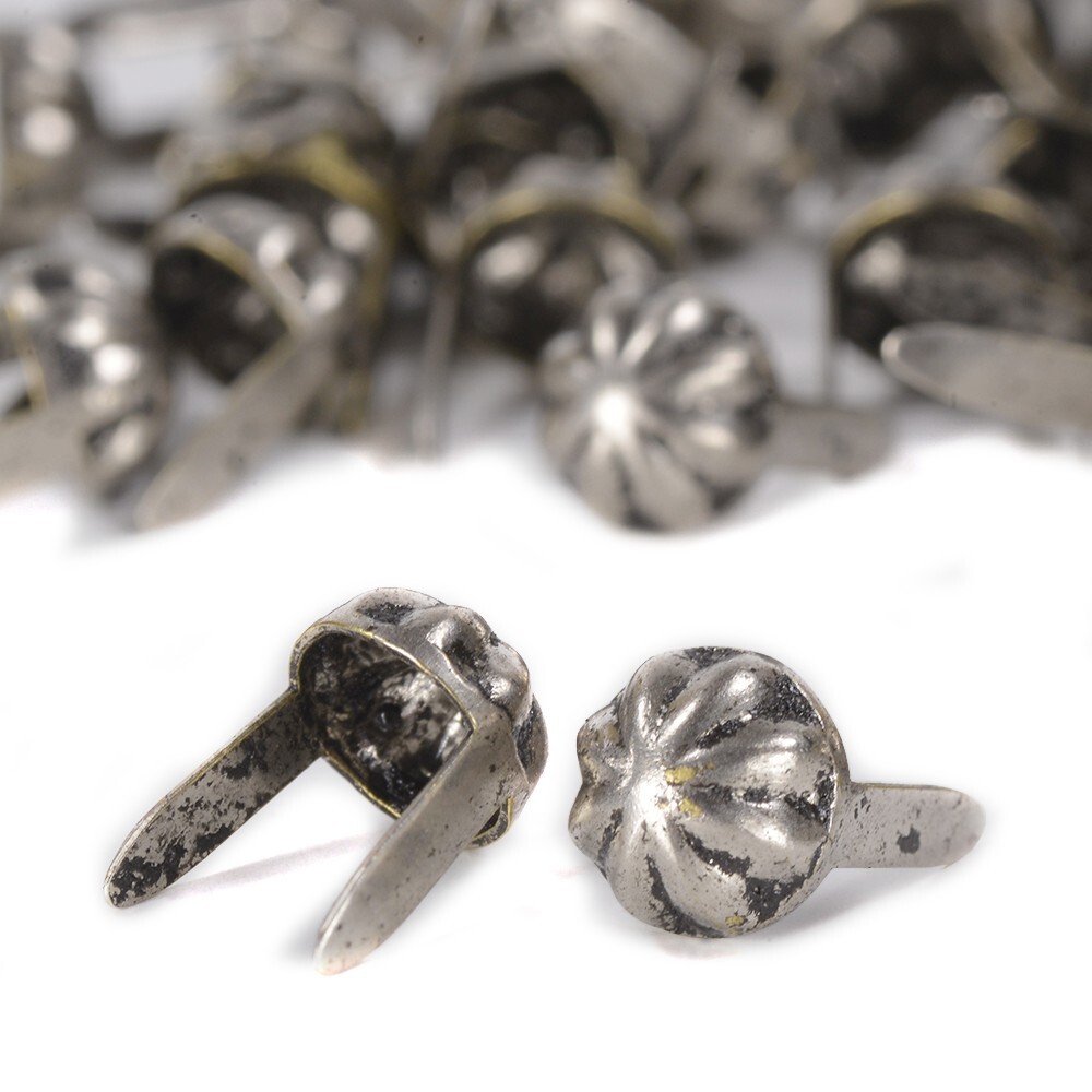 | こちらは「アンブレラ型 スタッズ 2爪ロング 6mm アンティークニッケル [ 1個 ]」のご購入ページです。 スタッズの詳細