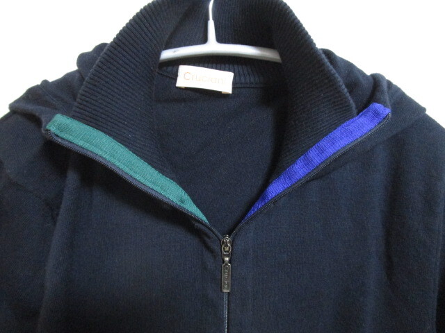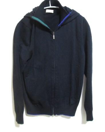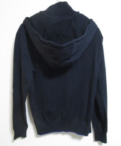 ジップアップニットフーディー☆フロントファスナーを開けるとネイビーとグリーンのバイカラーの前立てが現れます♪コットンブレンドなのでロングシーズンお使いいただけると思います(素材は画像をご確認下さい)◎ストレッチありなのでジャストフィットで◎ハンドポケあり☆表記サイズは46平置き、肩幅約39cm、身幅脇下約50cm、着丈(背面、襟下から)約60㎝,袖丈約62㎝です。(素人寸)。 やや着用感などございますが、古着としてはこれからのお品だと思います。 |