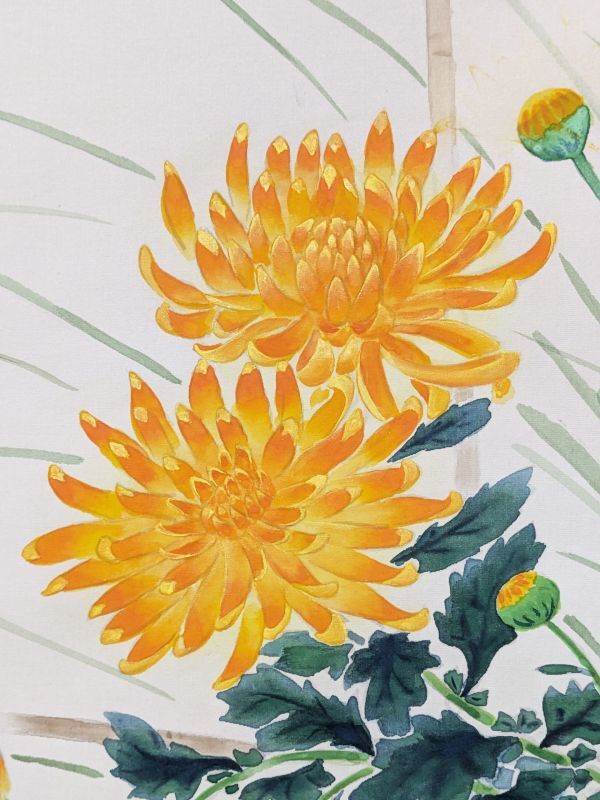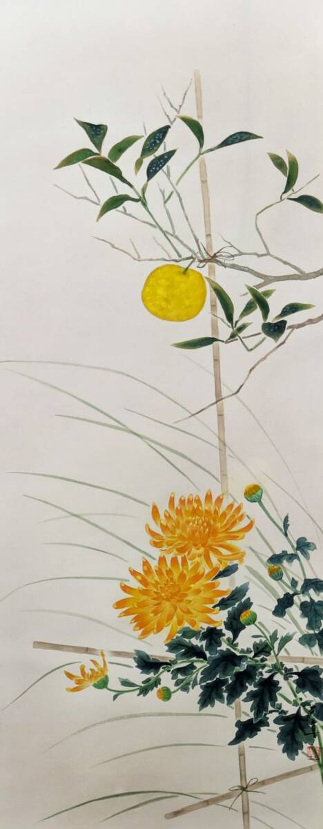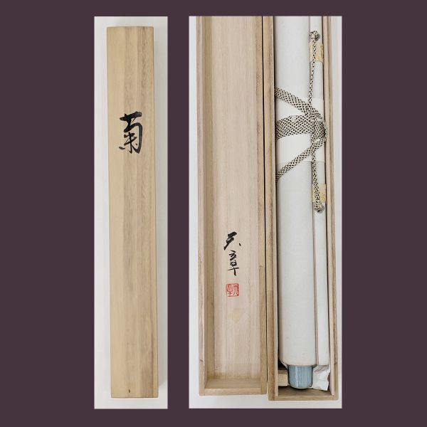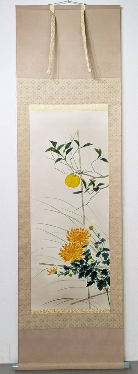 【掛軸】「菊」尺五立 絹本/肉筆/共箱/秋/外寸186*59【250929-16】