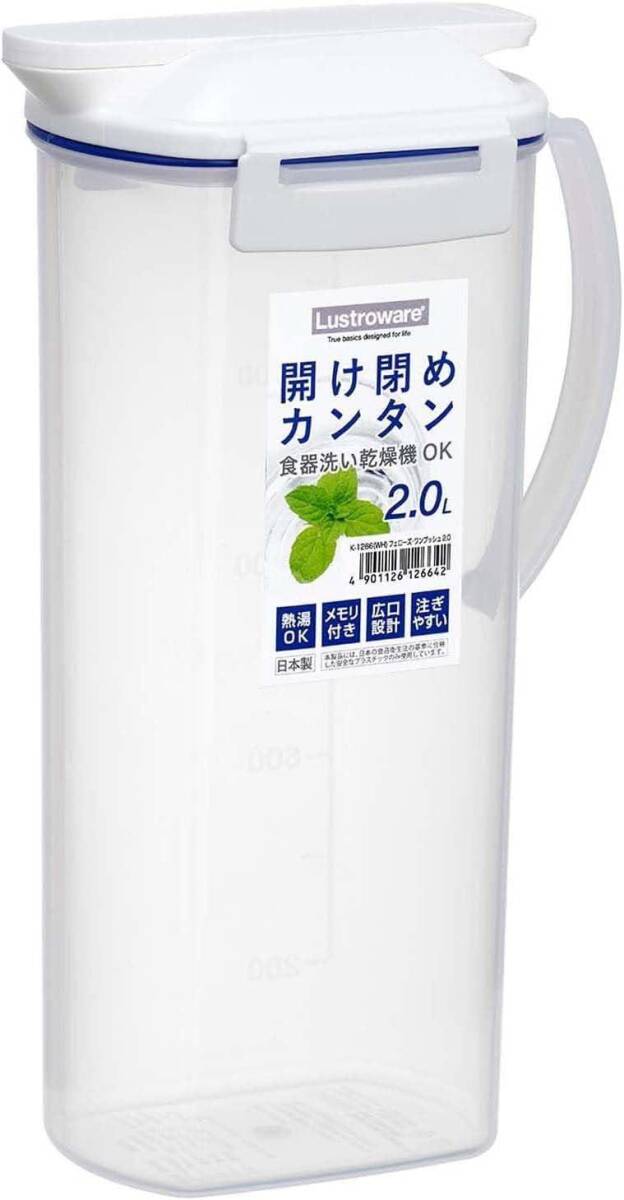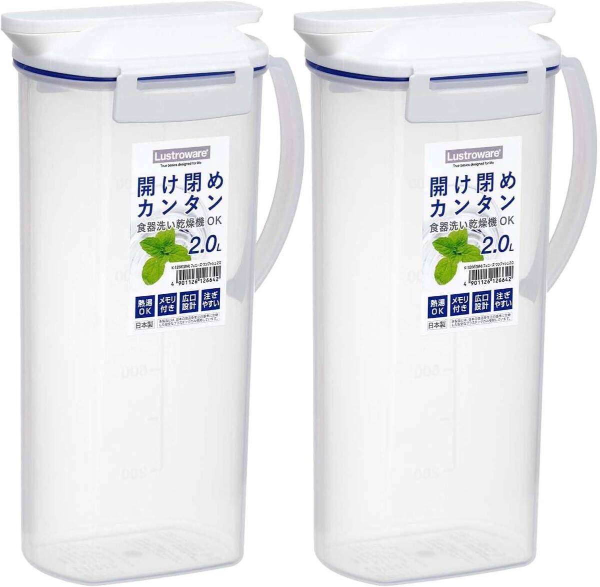 岩崎工業 ラストロウェア 冷水筒 フェローズ ワンプッシュ ピッチャー 2.0L 2個セット ホワイト 持ちやすいハンドル付き