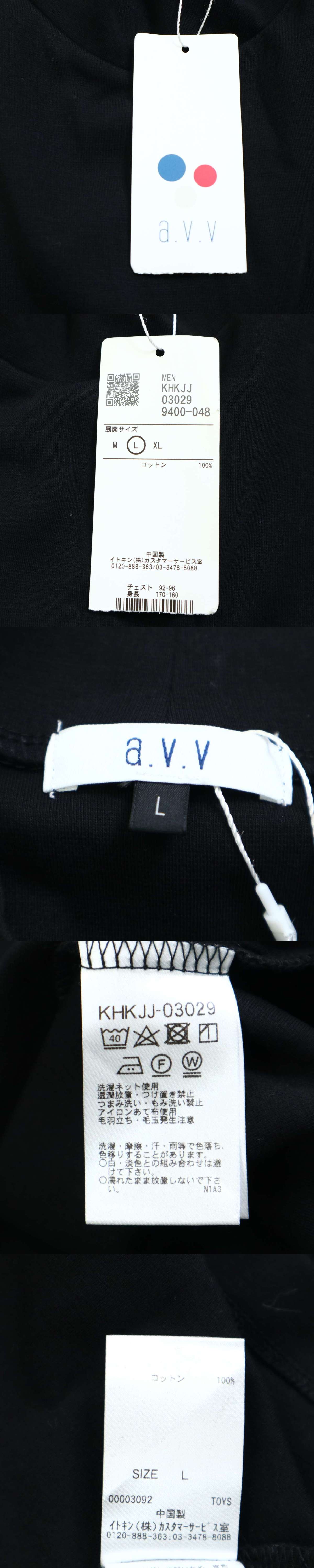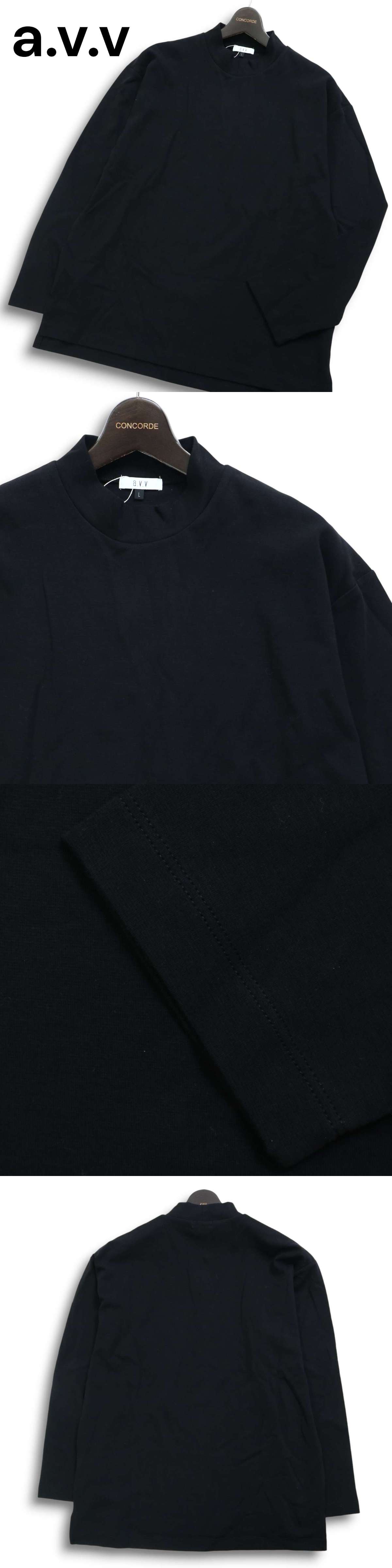 【新品 未使用】 a.v.v アーヴェヴェ 通年★ モックネック 長袖 カットソー ロンTシャツ Sz.L メンズ 黒