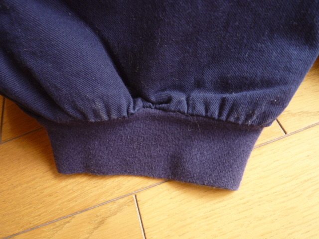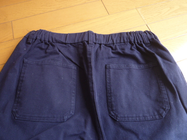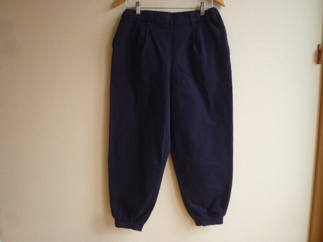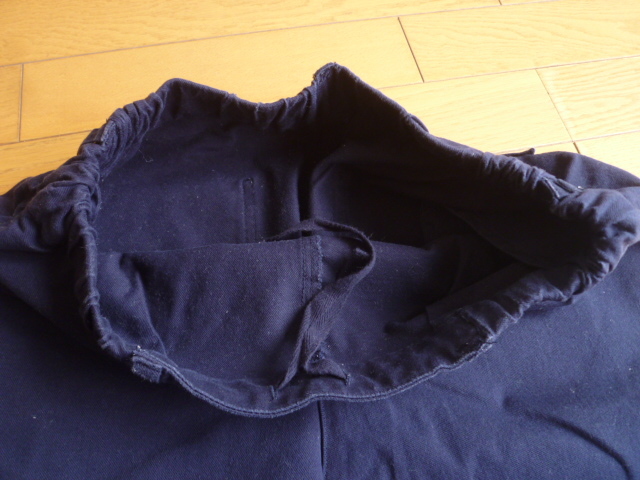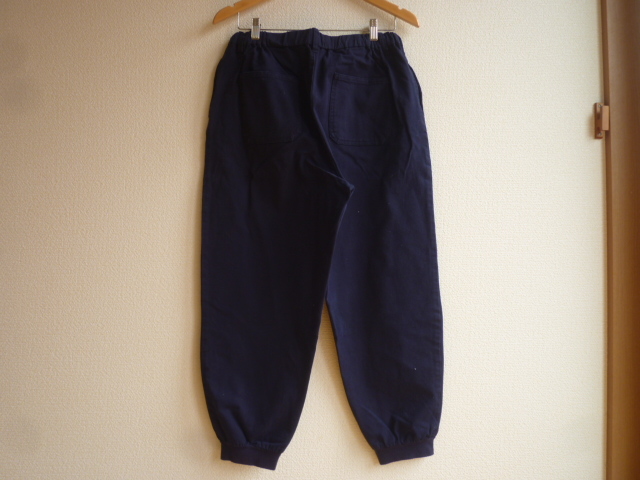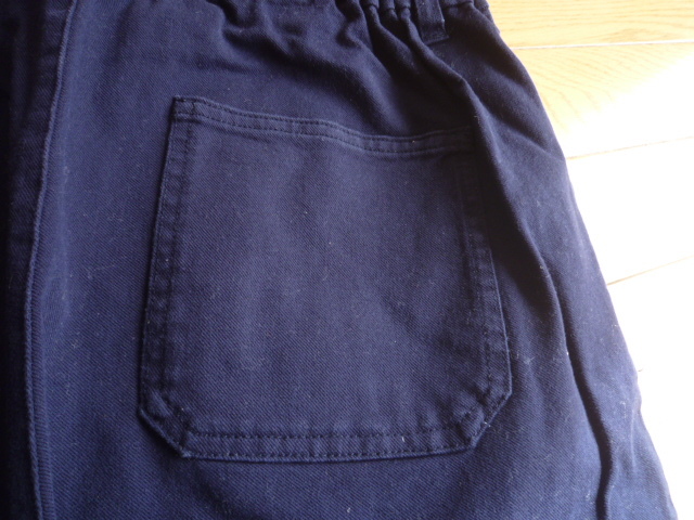 サイズはLです。ウエストは脇から背中部分がゴムで調節ヒモ付きになります。総丈91cmウエスト幅38cm股上34cm股下63cmヒップ幅55cm太もも幅34cm裾幅13cm位です。見た限りでは目立つようなシミや汚れはないと思います。色はネイビーになります。落札後のキャンセル・クレームはご遠慮下さい。わからない事など質問して下さい