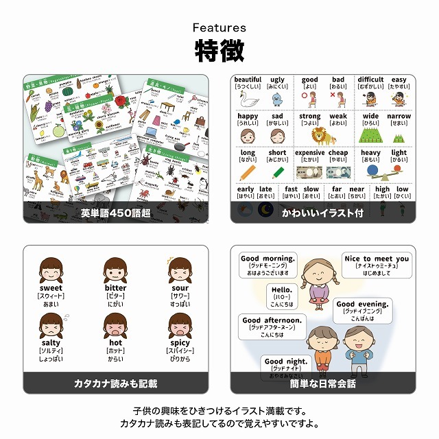 ※幼稚園生・小学生向けのキッズ英単語2枚セットです。