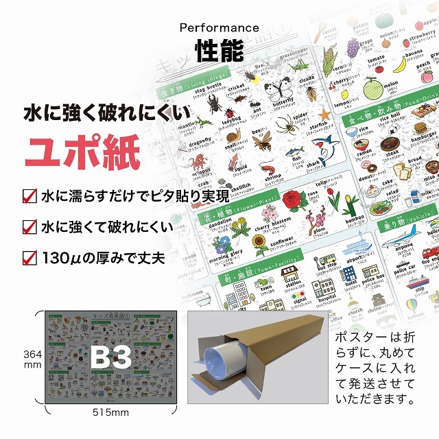 学ぶことができます。さらに、防水タイプのユポ紙を使用しているため、お風呂の壁に貼ることができます。