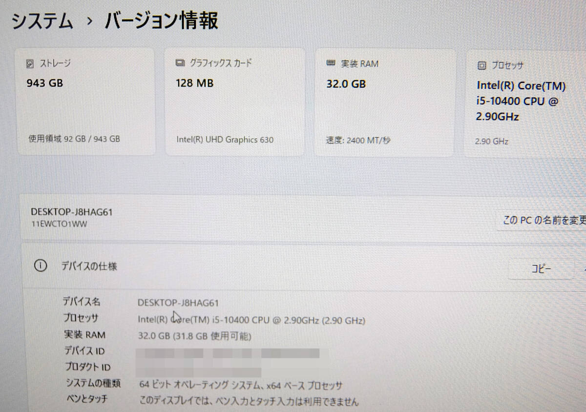 Lenovo ThinkCentre 11EW intel Core i5-10400 2.90GHz メモリ32GB SSD500GB+HDD500GB DVD Windows11 管67