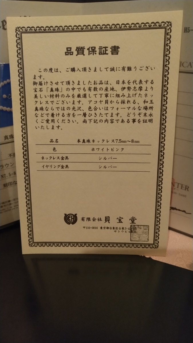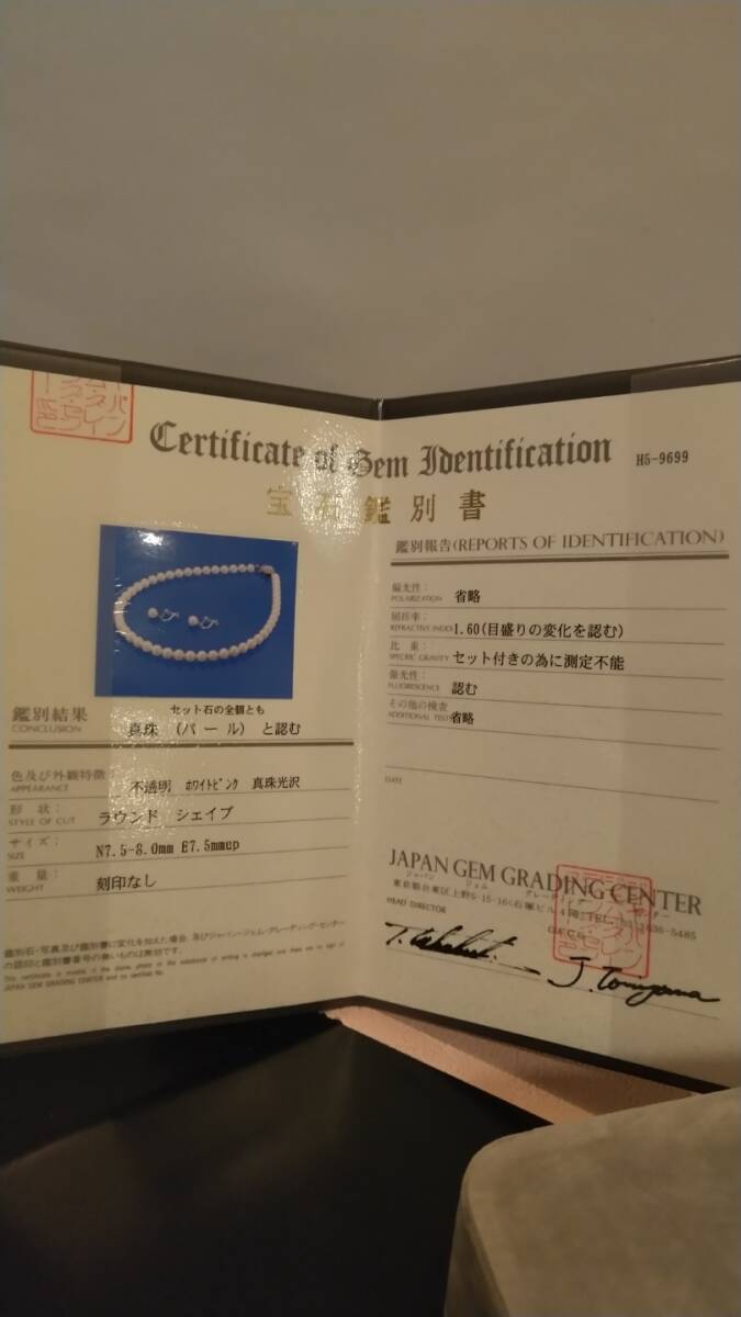 真珠のサイズ: ネックレスの真珠の直径7.5mm※保証書に記載