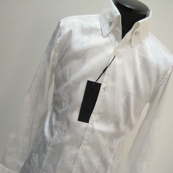 新品 1.6万 M トルネードマート フラワーJQクリスタルBDシャツ 長袖 ホワイト 送料無料 016