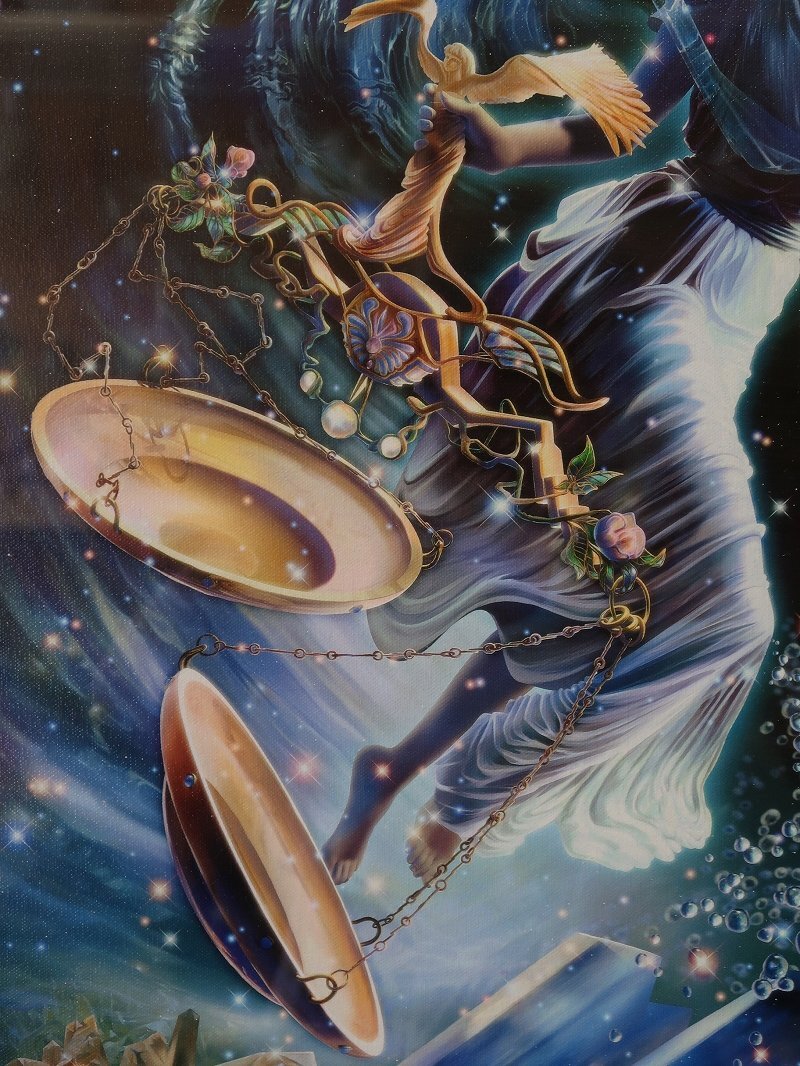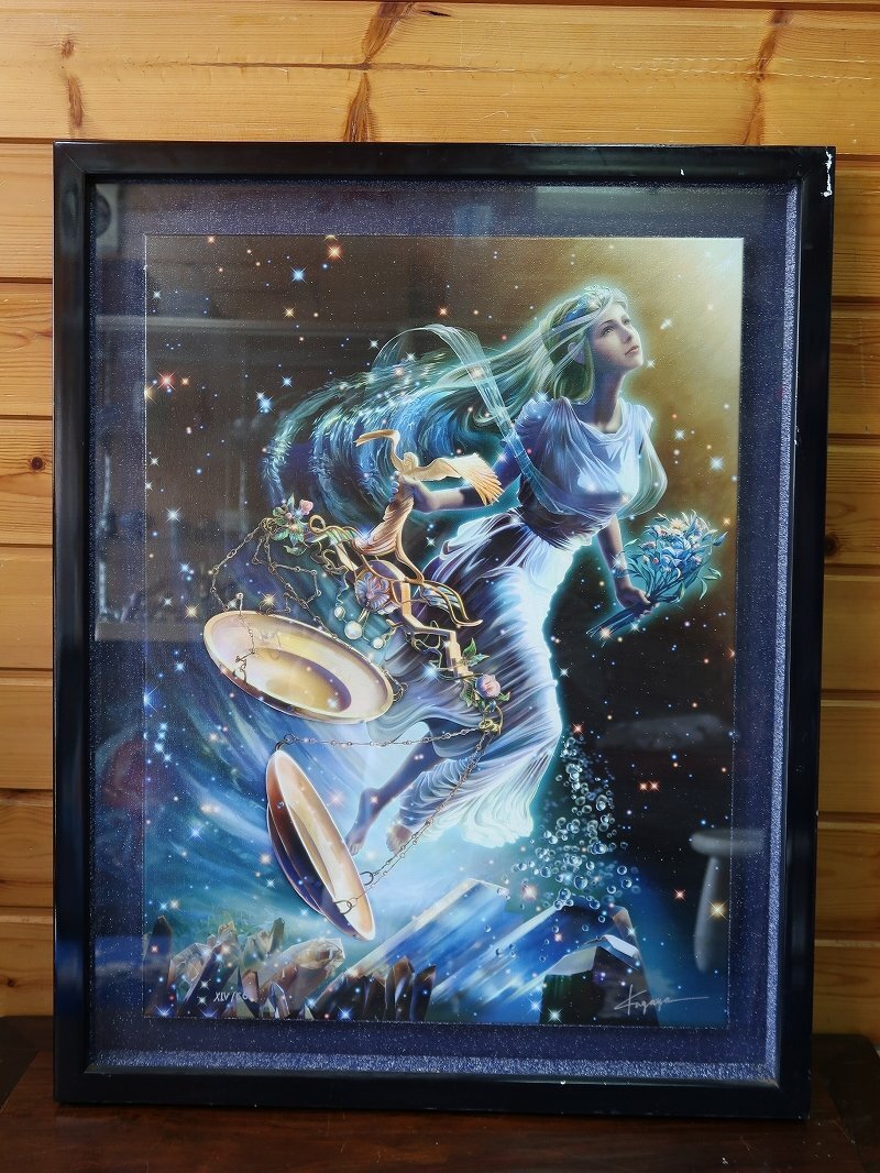 【青宝】092957KAGAYA「ライブラ(天秤座)」版画 ジーグレー XIV/CC 裏直筆サイン 額装(4217170-2/217)