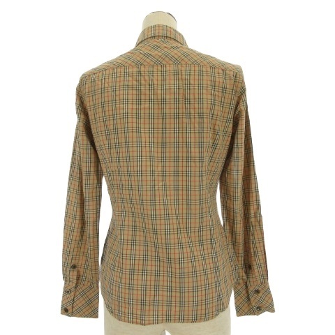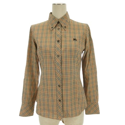 バーバリーズブルーレーベル Burberry's BLUE LABEL ノバチェック ボタンダウン シャツ 長袖 38 ベージュ 251002E ■GY22 レディース