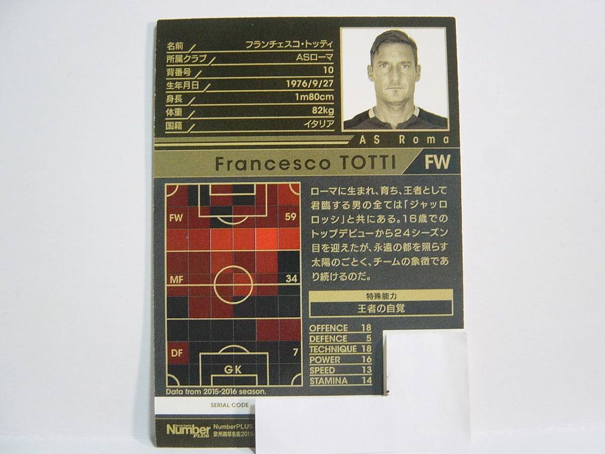 WCCF 2015-2016 ver3.0 EXTRA 白 フランチェスコ・トッティ 15-16 NumberPLUS付録