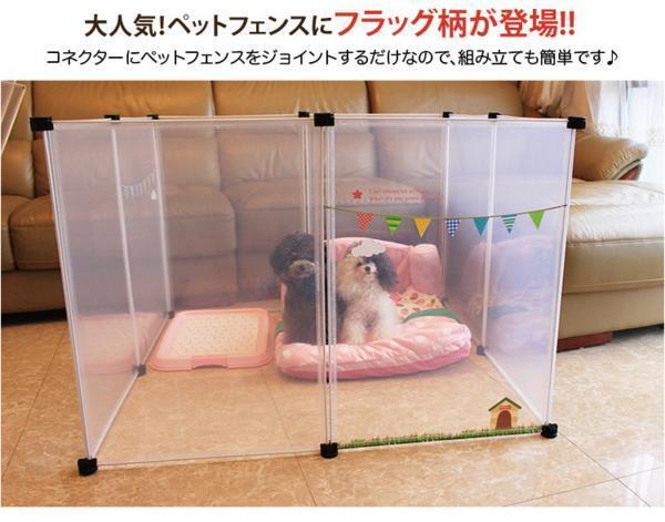 好きなレイアウトに変えられる♪ ジョイント式のペットフェンスです。 1枚50cm×70cmのパネル8枚を専用のコネクターでジョイントし、 L字型、長方形、正方形等、お好みの形にペットフェンスにレイアウトできます。 縦に配置し、高くすることも!横にして広く使うこともできる1枚50cm×70cmパネル! コネクターにペットフェンスをジョイントするだけなので、組み立ても簡単です♪ テレビやAV機器の保護、玄関への出入り防止などにも便利です。 工具不要の折りたたみタイプ、ペットケージ。 持ち運びが出来、簡単に設置する事が出来るので自宅だけでなく外出先でもお使いいただけます。 お掃除も楽チンです。 ※画像内の犬やクッションなどは付属しません。 ※パネルは無地となります。旗の絵など描かれておりません。 サイズ(約):【Mサイズ】約100x100x70cm ※パネル1枚あたりのサイズ 約50x70cm 8枚入り 重量:本体:(約)1.7kg 素材: パネル:PP フレーム:鉄 ジョイント:ABS |