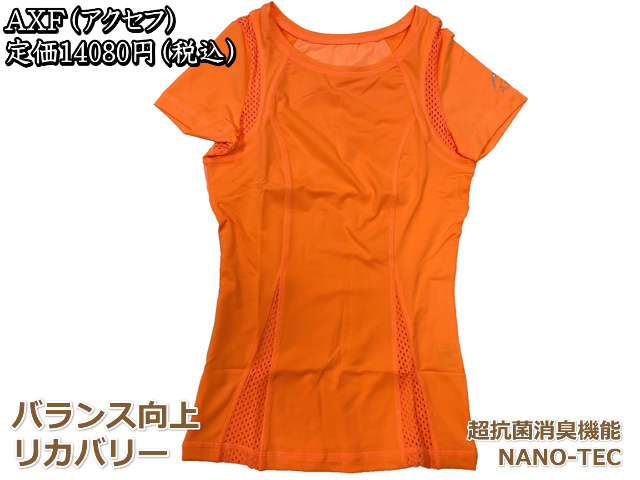 【新品未使用】217307 Mサイズ 定価14080円 オレンジ AXF アクセフクルーネック半袖Tシャツ バランス向上 リカバリー