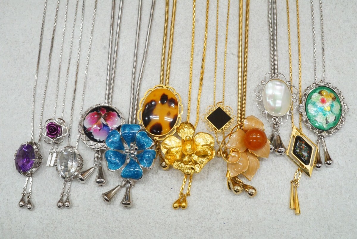 C357 天然石 陶器など ループタイ ネックレス 12点セット ヴィンテージ アクセサリー 大量 まとめて おまとめ まとめ売り ペンダント