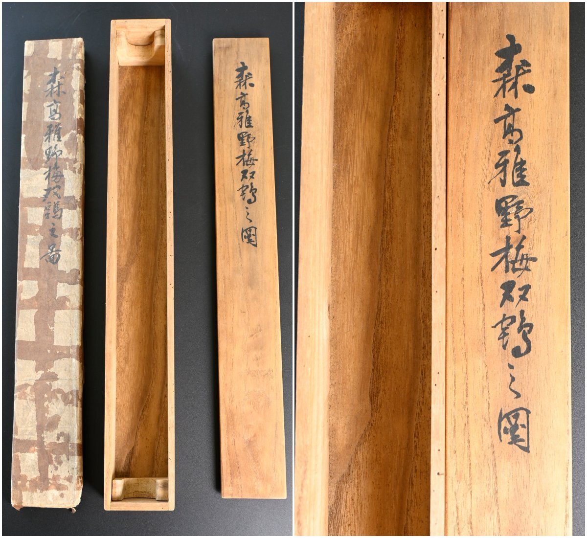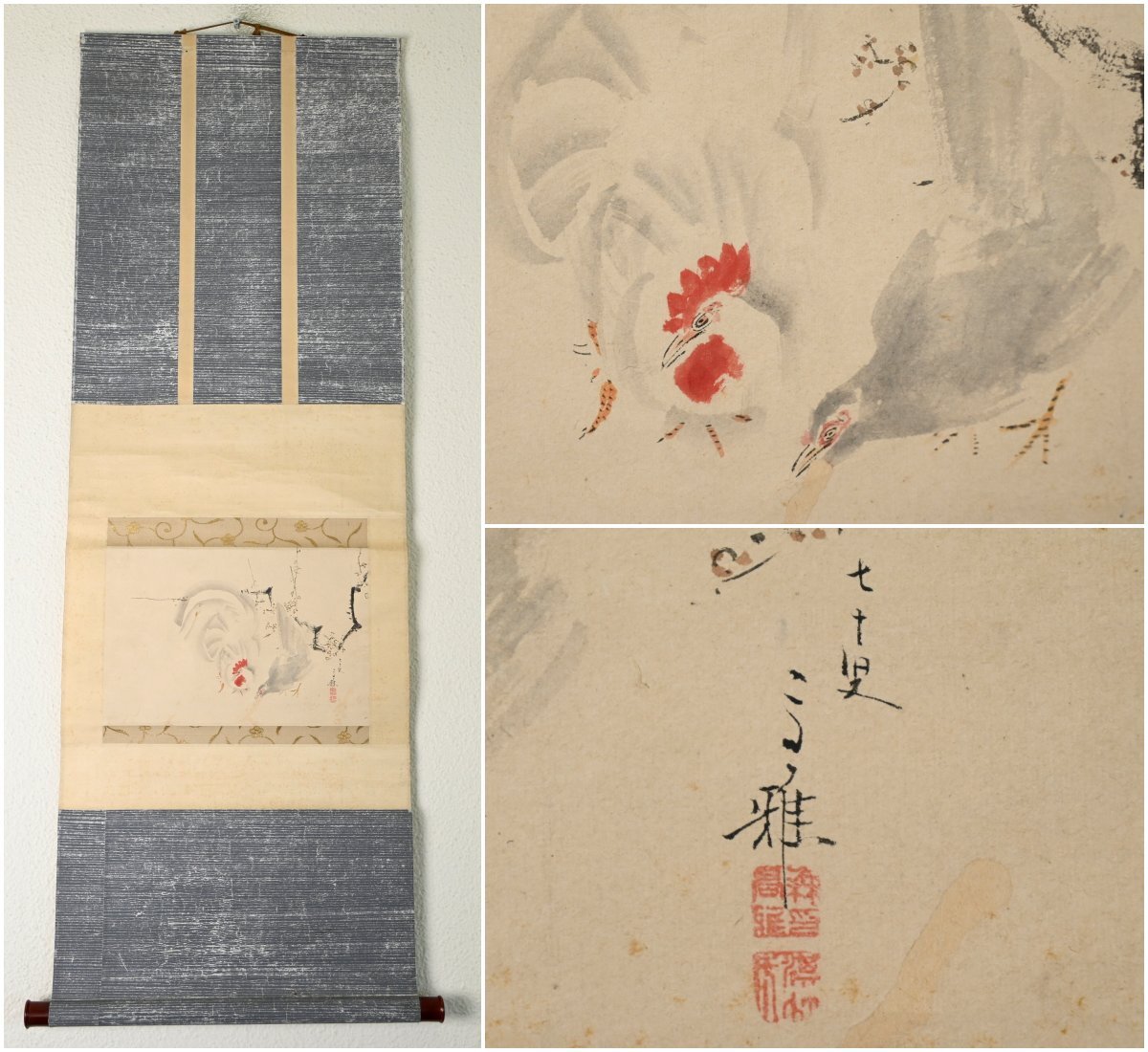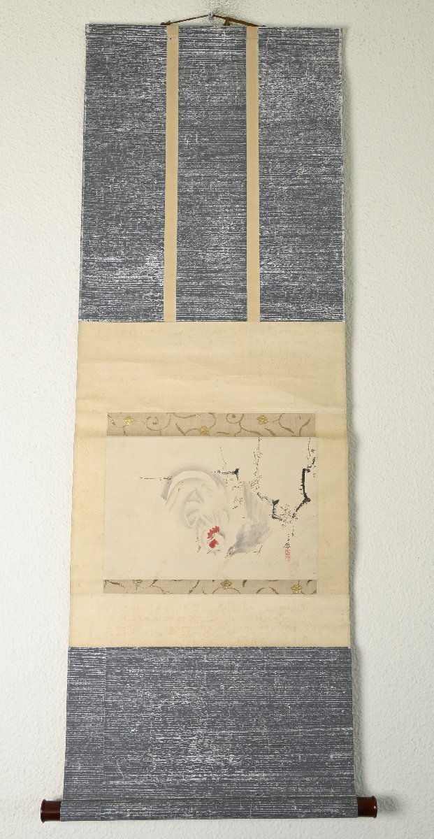 森玉僊作 「野梅双鶏之図」の掛軸です。