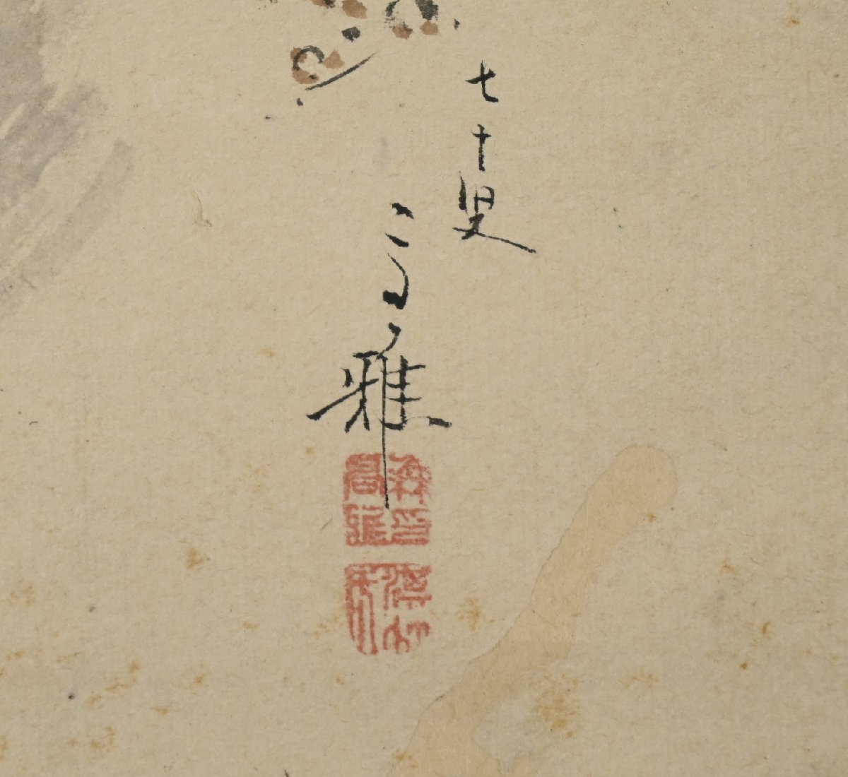 古い物なので軸に汚れやシミ、折れにヤケがあります。