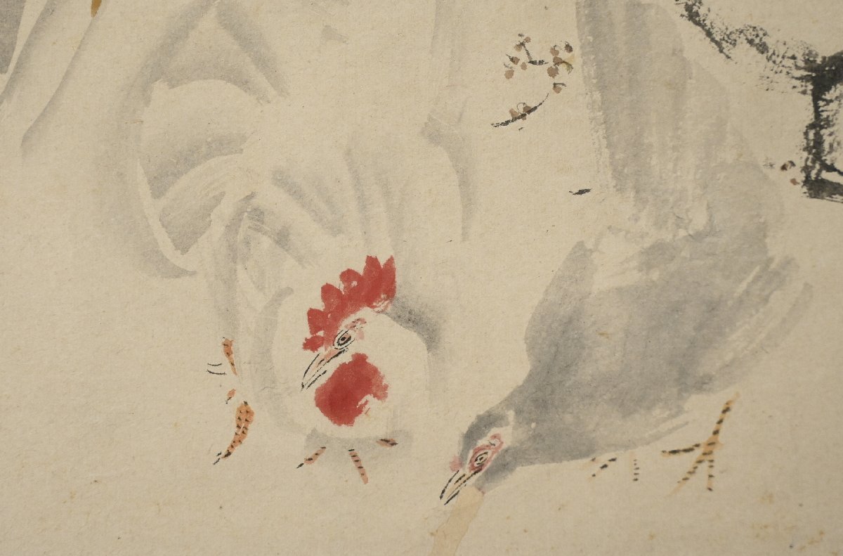 【模写】『森玉僊』牧墨僊 門人「野梅双鶏之図」紙本軸装 掛軸 書画 日本画