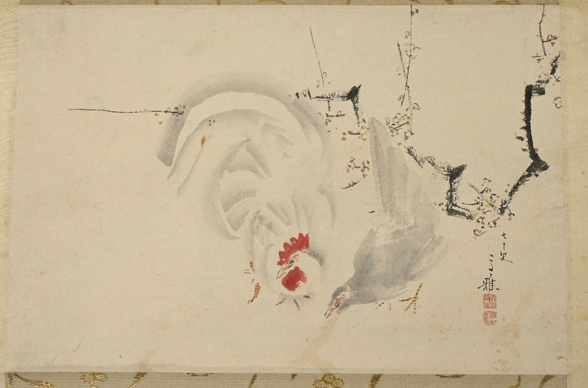 【模写】 『森玉僊』 牧墨僊 門人 「野梅双鶏之図」