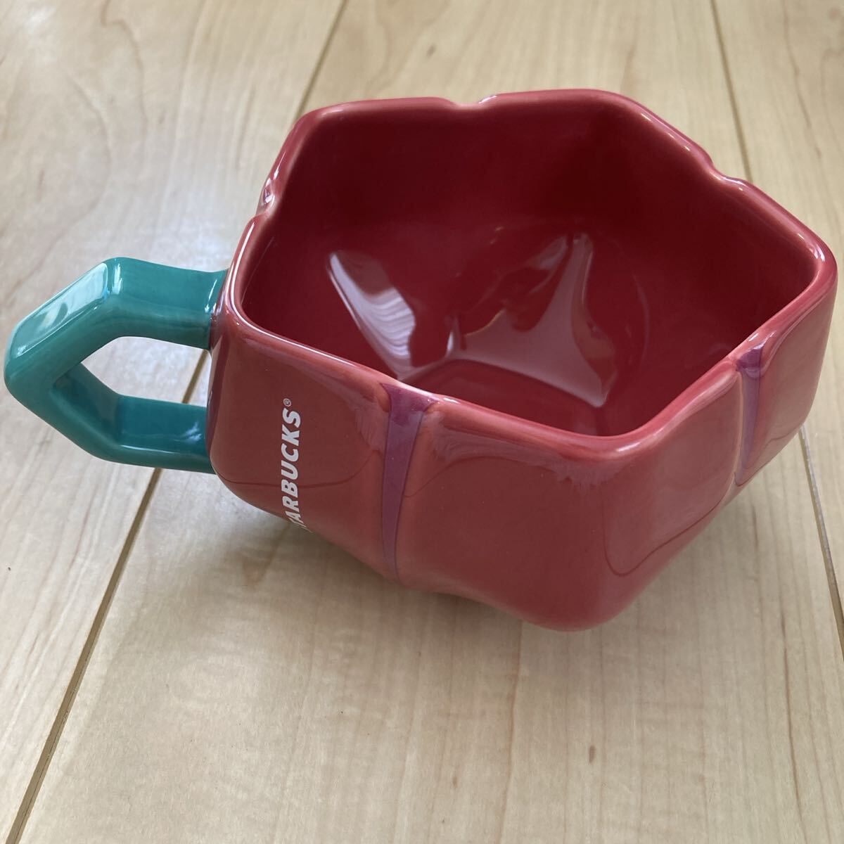 スターバックスの355mlマグカップ、ピンクとグリーンの椿デザインが特徴。