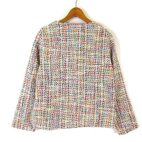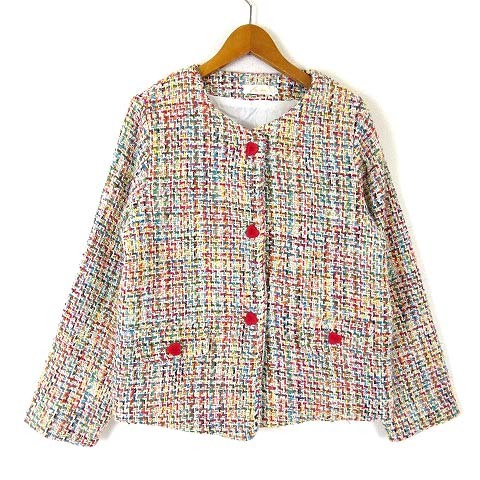 Fashion ジャケット ツイード ノーカラー カラフル ハートモチーフボタン 長袖 XL マルチカラー 大きいサイズ レディース