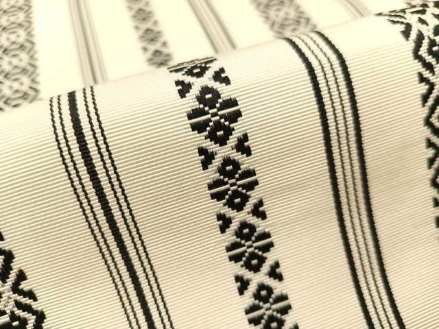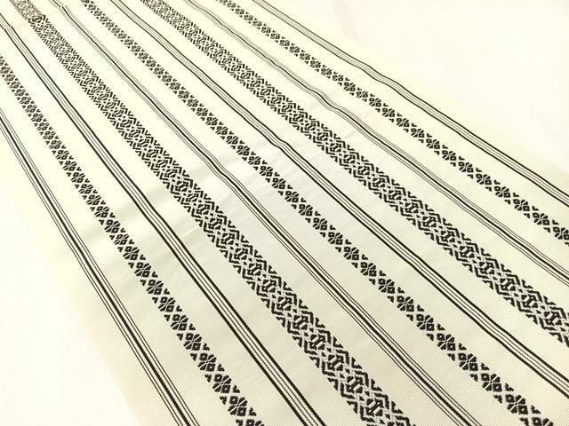 【正絹・未仕立て】 状態は締めてはおりますが 特に目立ったシミ汚れなどもなく大変良い状態です。 本場筑前博多織は、 福岡県福岡市博多区やその周辺で生産される絹織物です。 仏具のひとつである独鈷、華皿を基にした幾何学模様が織られています。 江戸時代に筑前藩主だった黒田長政が幕府への献上品にしたことから、 博多献上、献上博多とも呼ばれます。 横畝が際立って見える経畝織りという織りになっています。 30〜60本の細い経糸を使うため、こしやはりがあり、 地合が硬く、光沢感があります。 きちんと締まり、くずれにくい、締めやすい帯といわれています。 大変上質な逸品になります。 お安く出品致しますので、是非この機会にいかがでしょうか? |