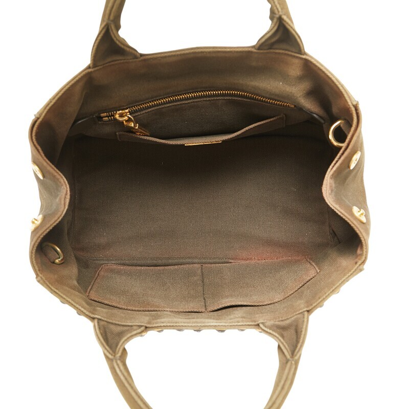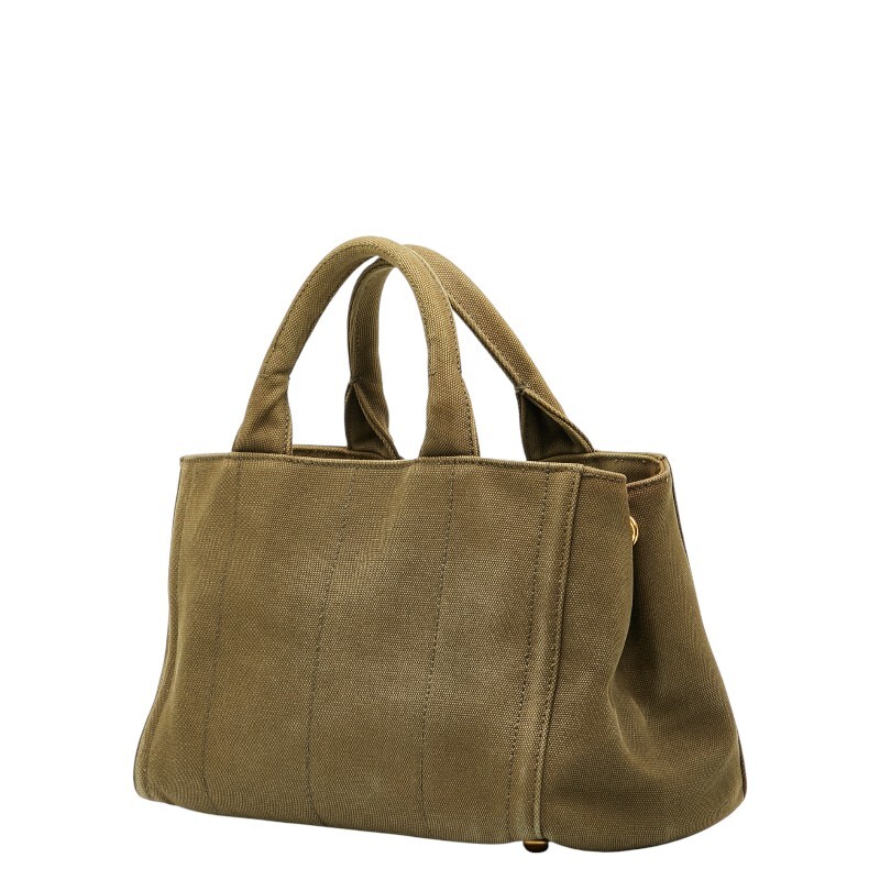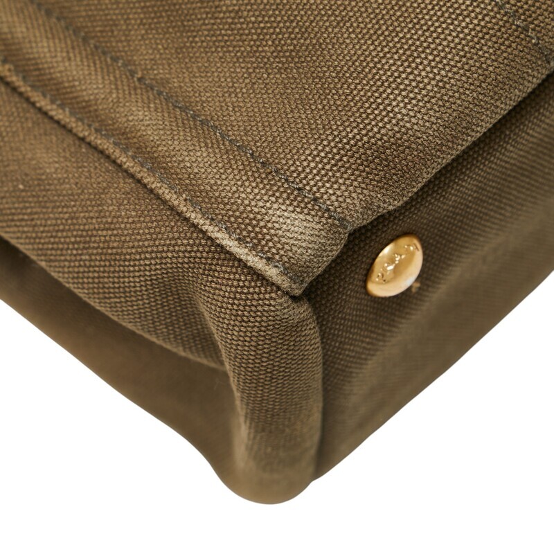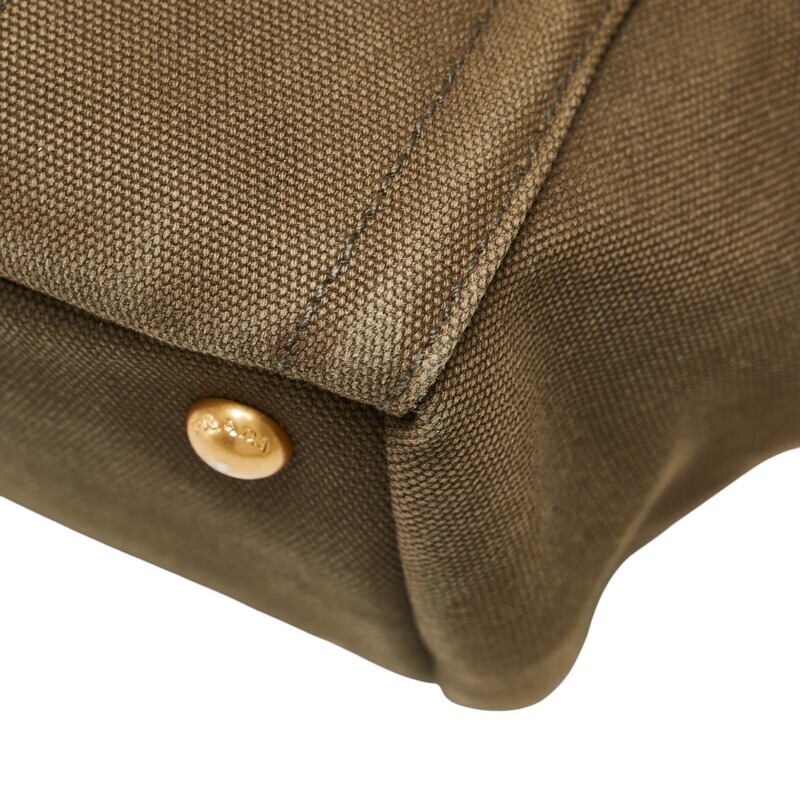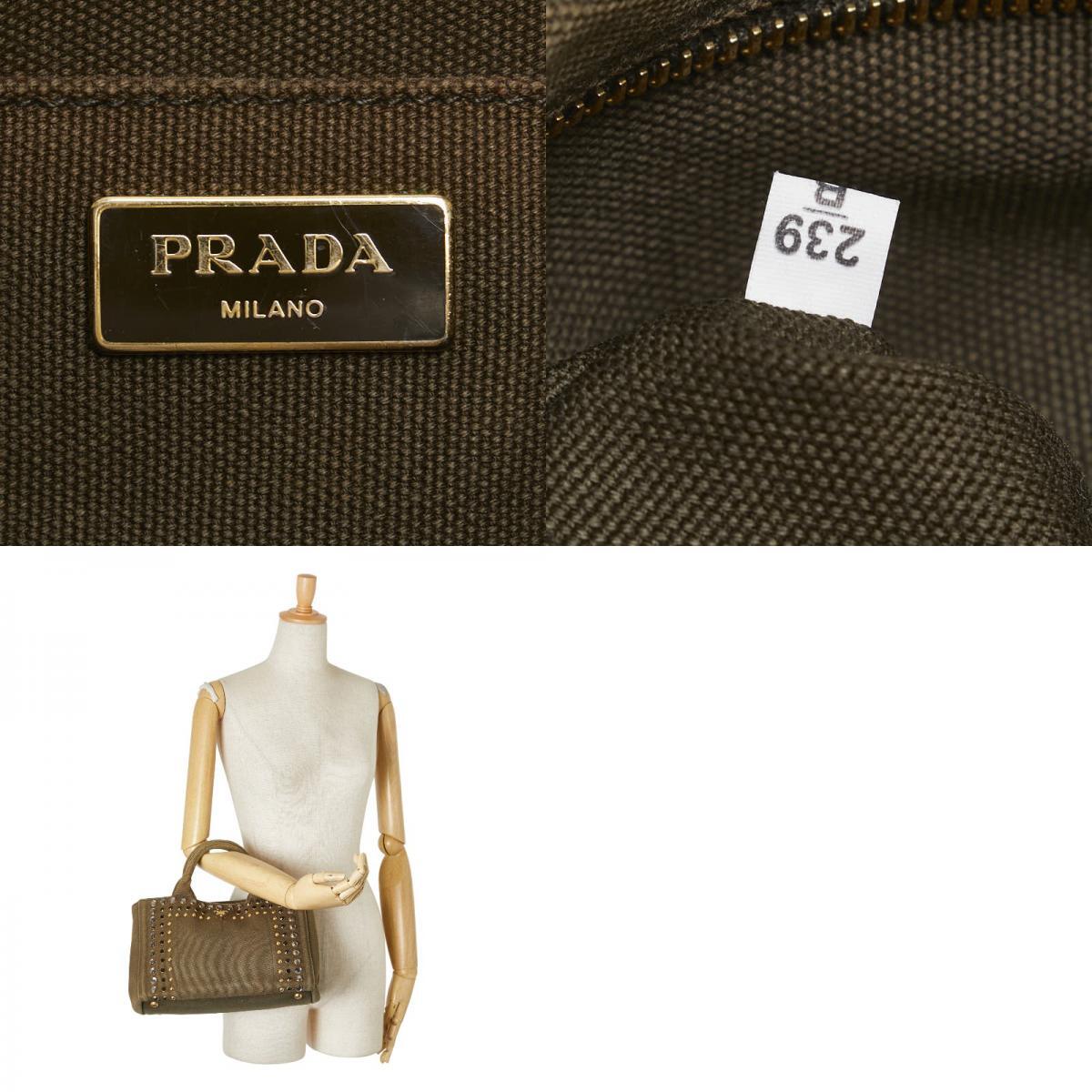 プラダ 三角ロゴプレート カナパ ビジュー スタッズ ハンドバッグ カーキグリーン キャンバス レディース PRADA 【中古】