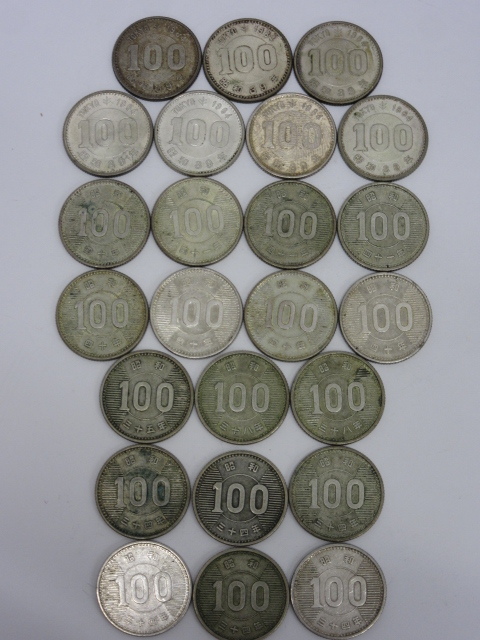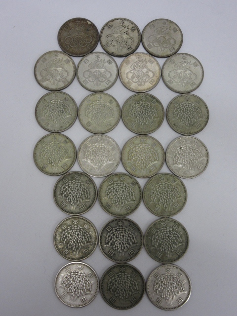 古銭祭 百円銀貨 おまとめ24枚 稲穂 17枚 東京オリンピック 7枚 昭和39年 100円 銀貨 現行貨幣 古銭