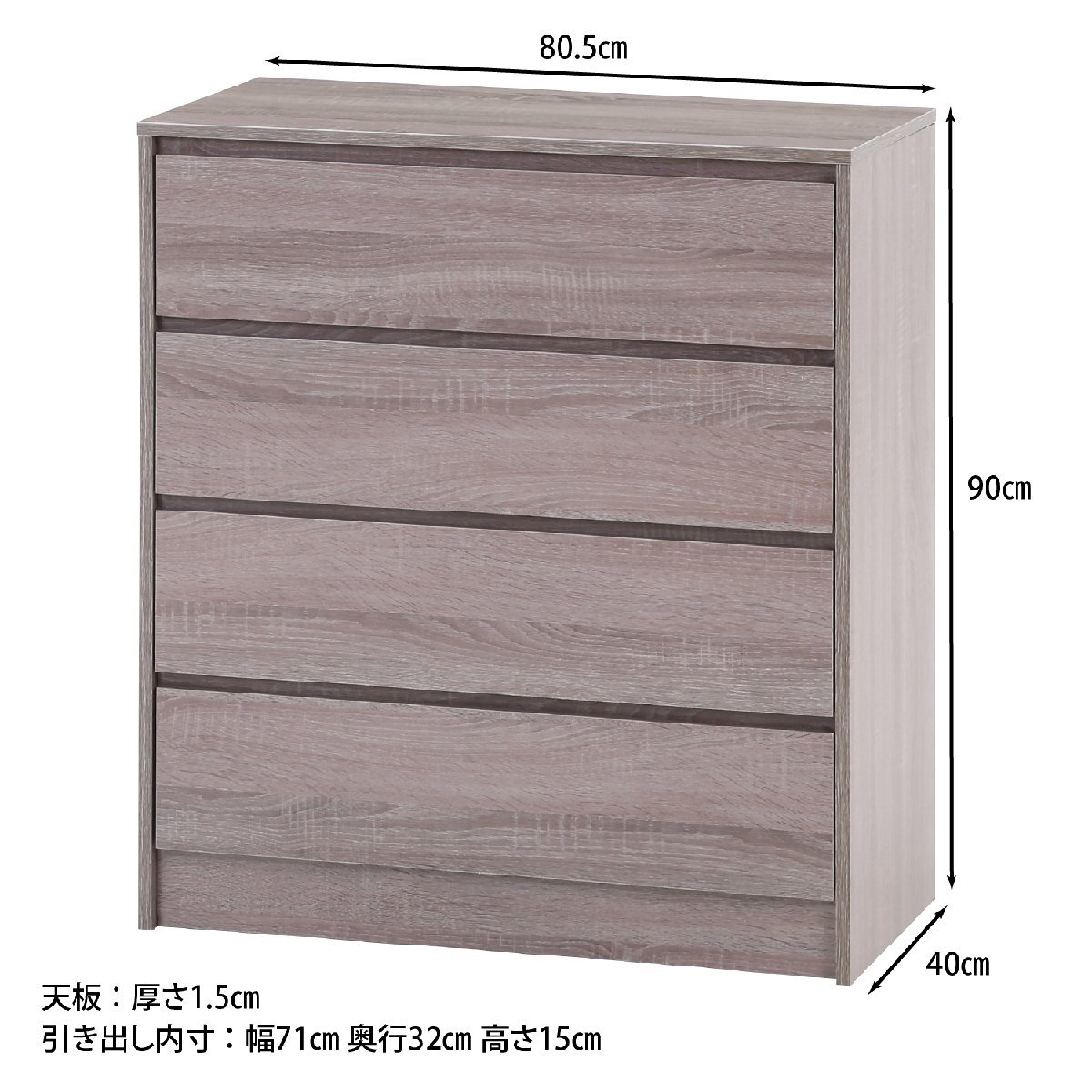 備 考 | ■工具不要の簡単組み立て仕様です。 ■収納力抜群の4段チェストです。 ■おしゃれな木目調カラーです。 |