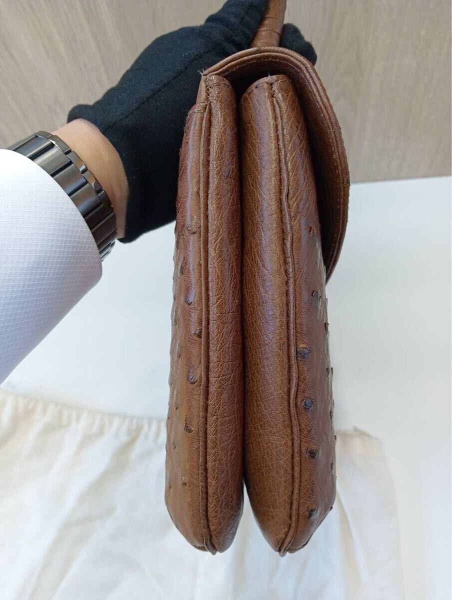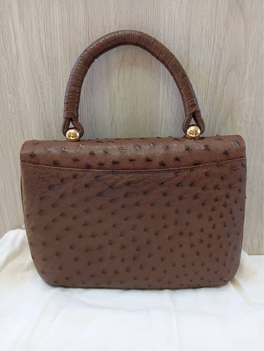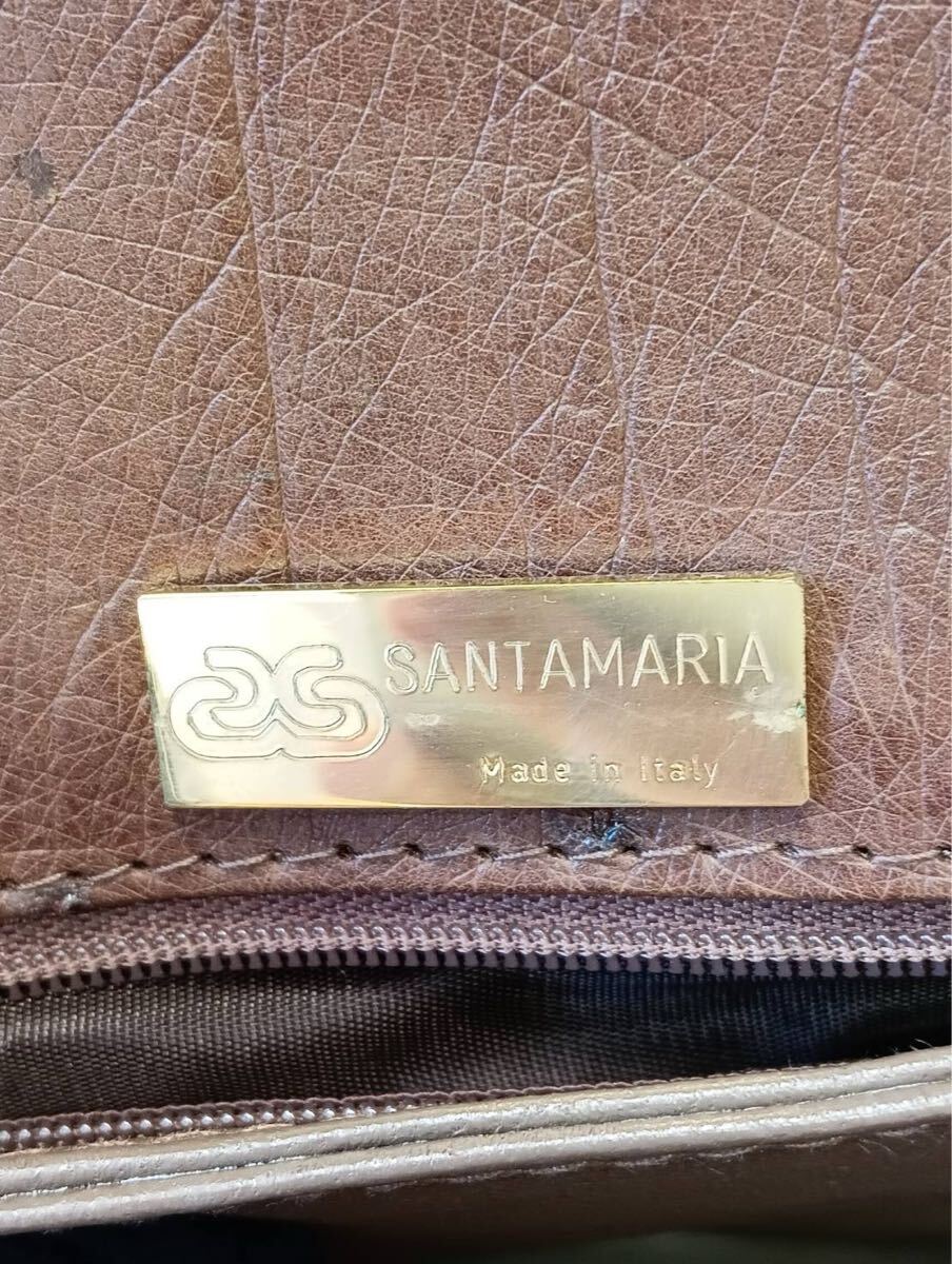 SANTAMARIAサンタマリア オーストリッチ ハンドバッグ 茶ブラウン 手提げ バッグかばん 保存袋付き 現状品