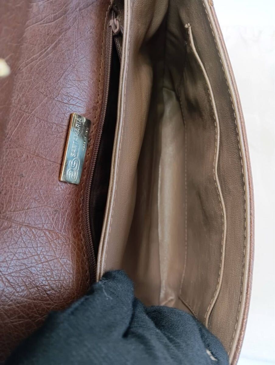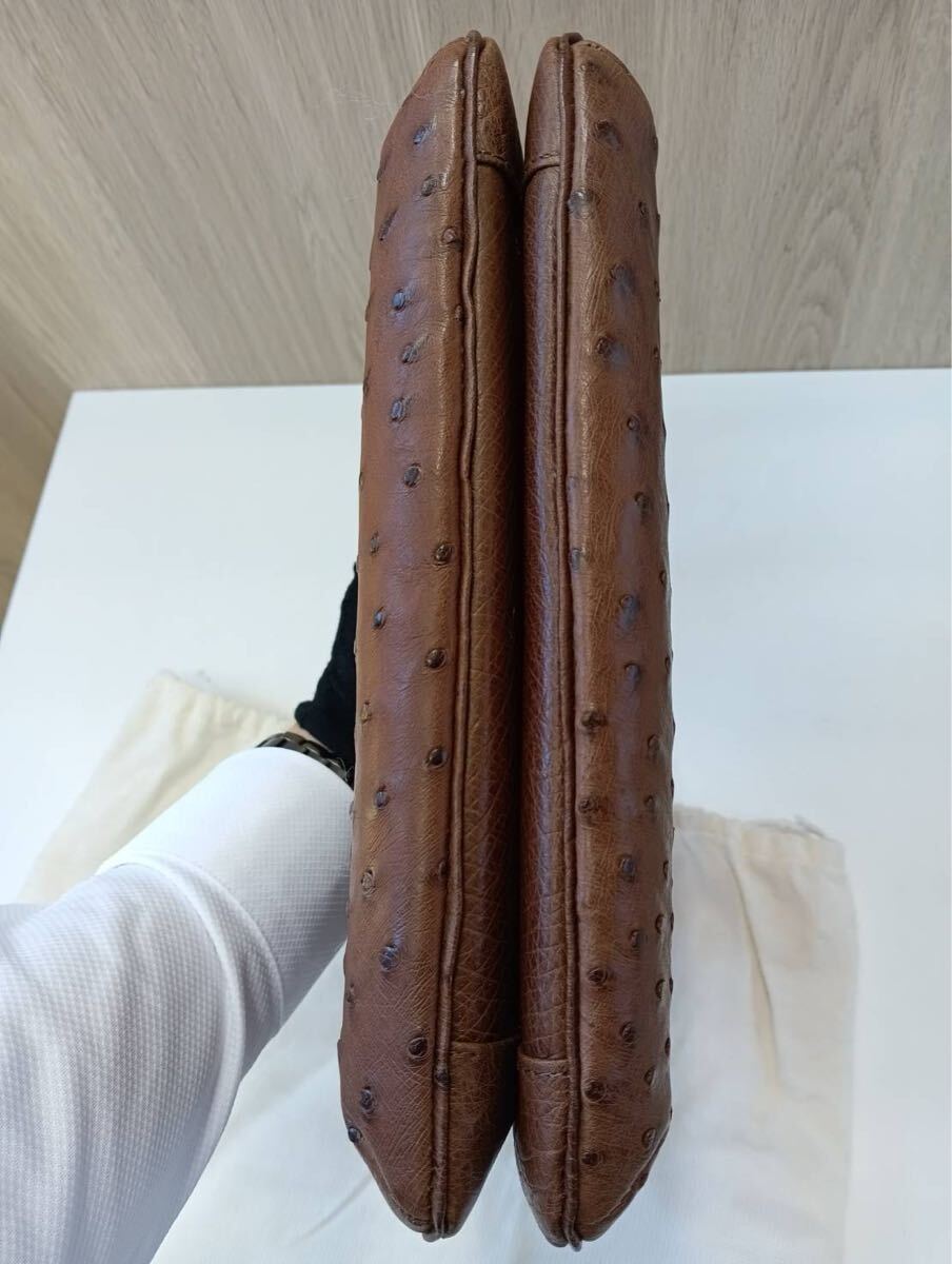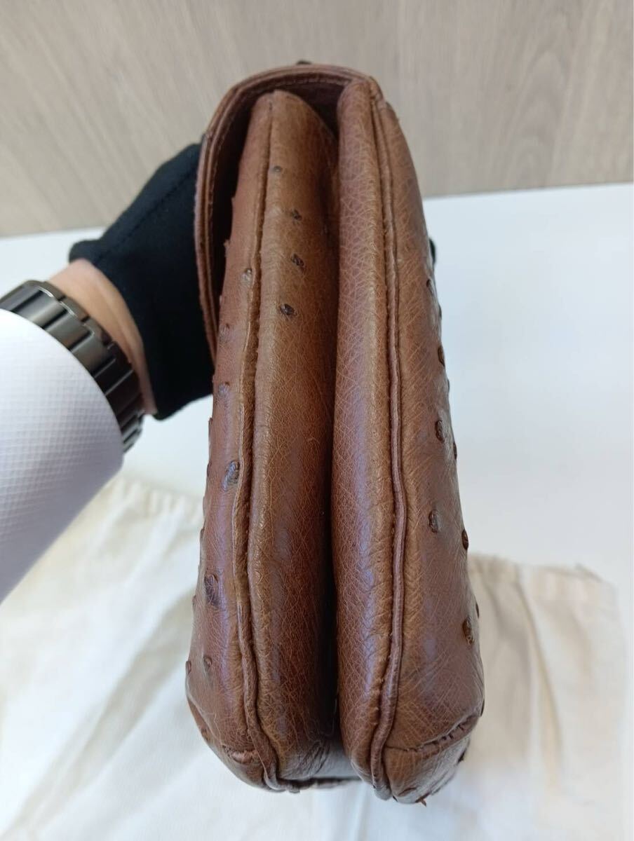 SANTAMARIAサンタマリア オーストリッチ ハンドバッグ 茶ブラウン 手提げ バッグかばん 保存袋付き 現状品