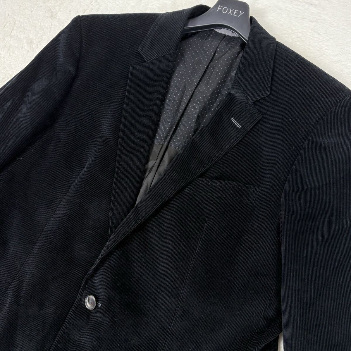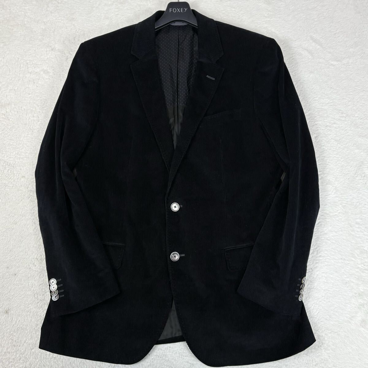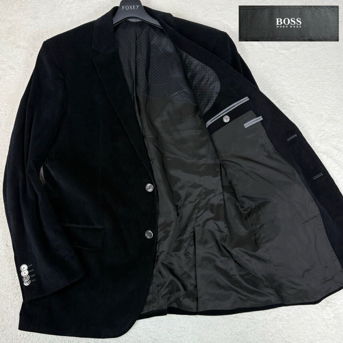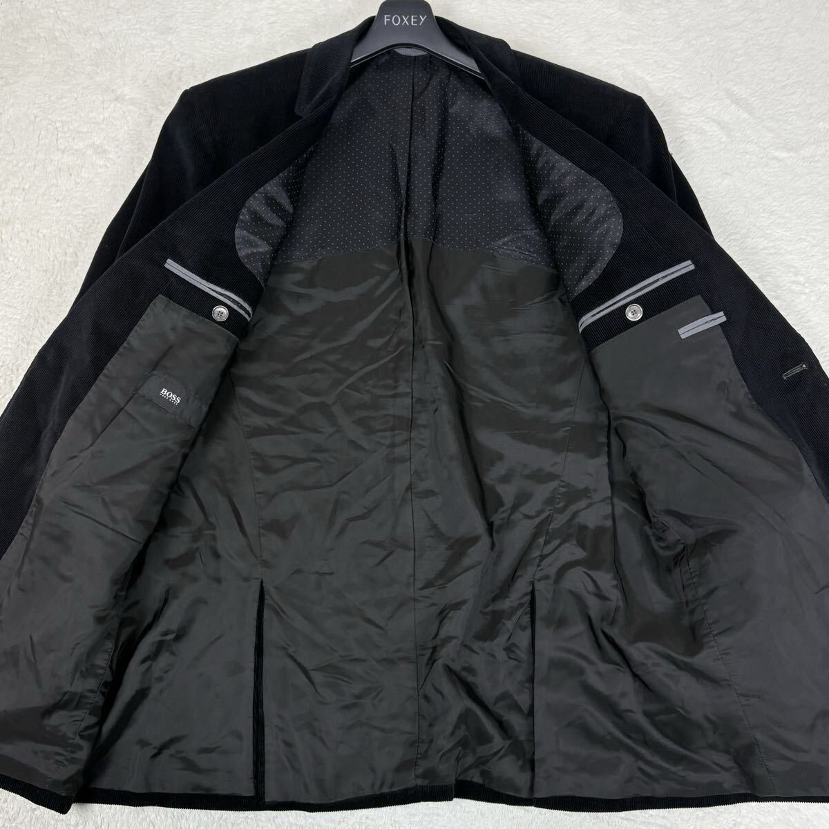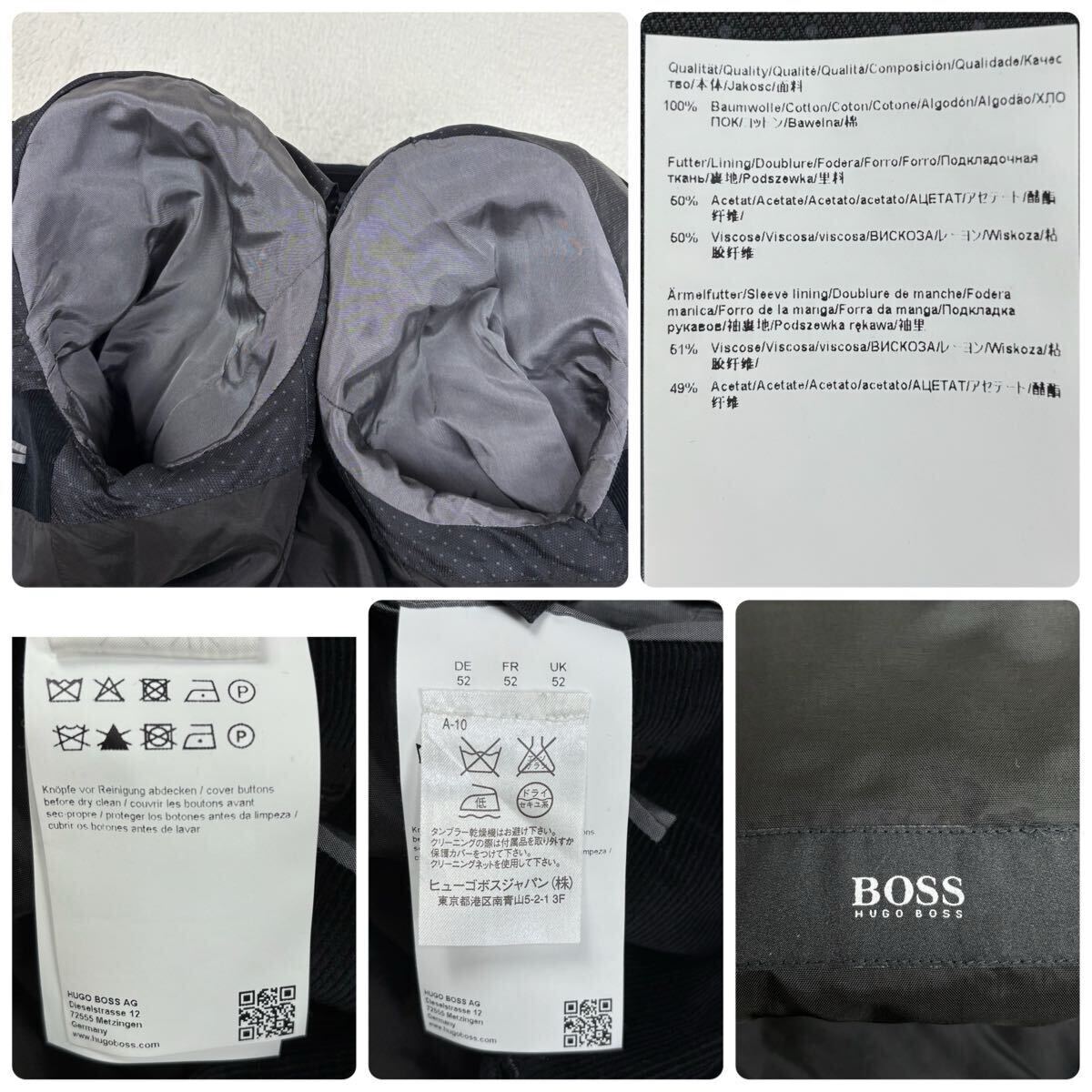 【XXLサイズ コーデュロイ】HUGO BOSS ヒューゴボス テーラードジャケット シングル 2B スーツ ブラック SIZE52 大きいサイズ ドット 黒 3L