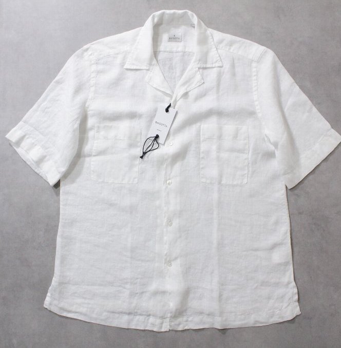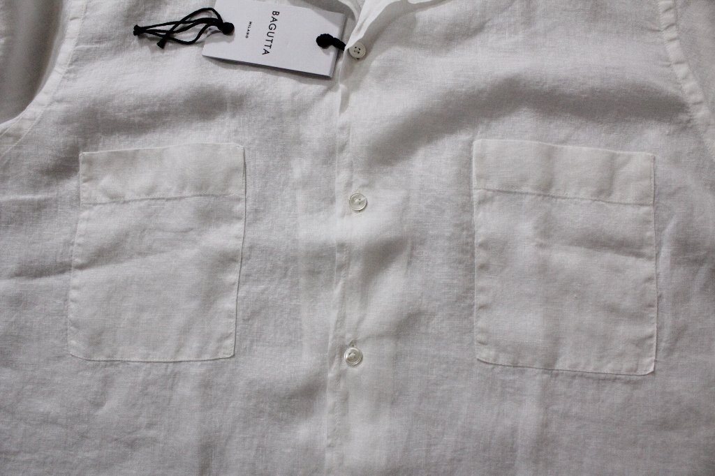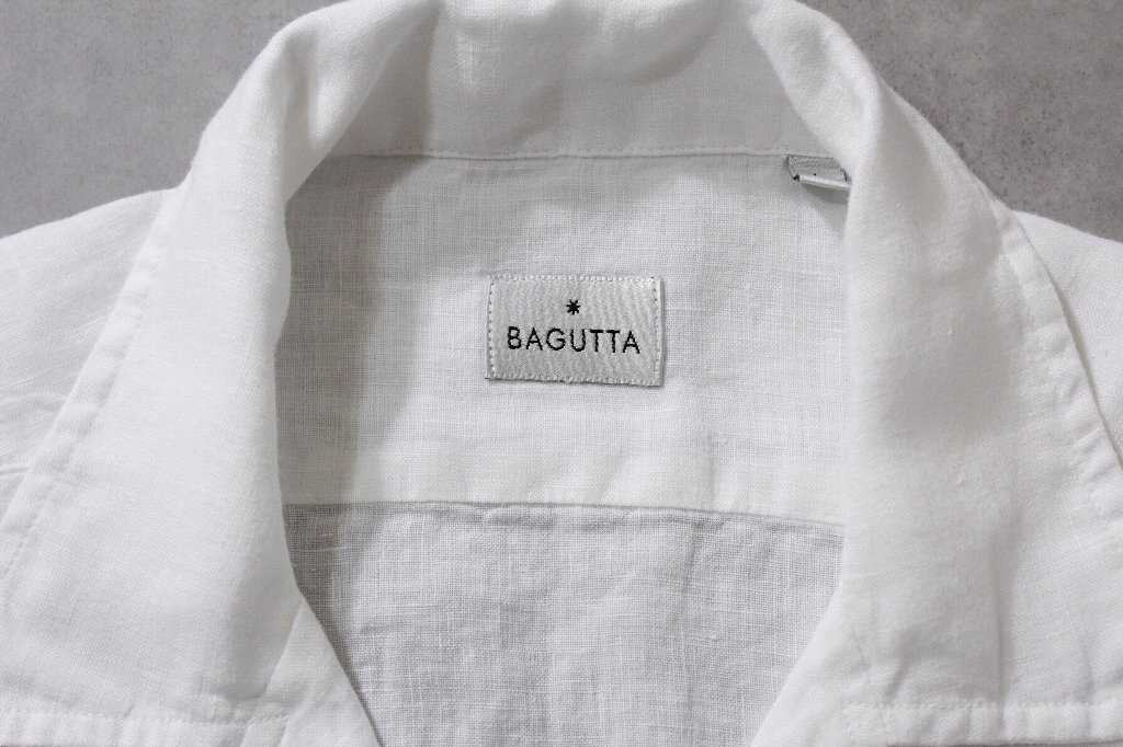 BAGUTTA★新品2.8万円程度 バグッタ ウォッシュドリネン素材の半袖オープンカラーシャツ「NEW MAUI」ホワイト無地 M