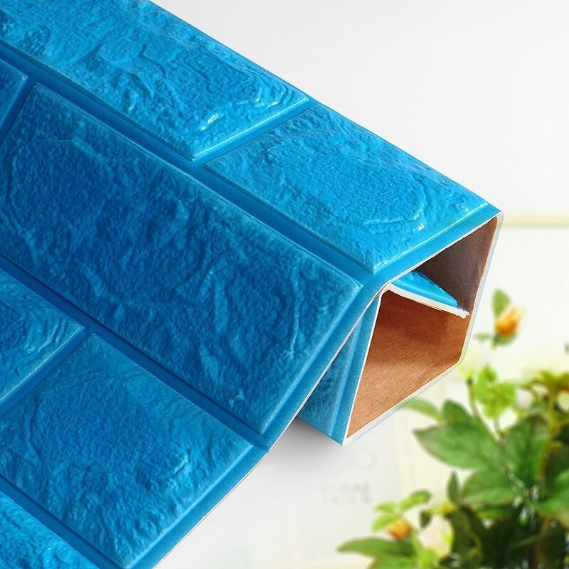 【30枚】高品質 3D クッション 壁 シール マリンブルー/青 レンガ調 糊付き リメイク 70×77cm 耐水 抗菌 傷防止