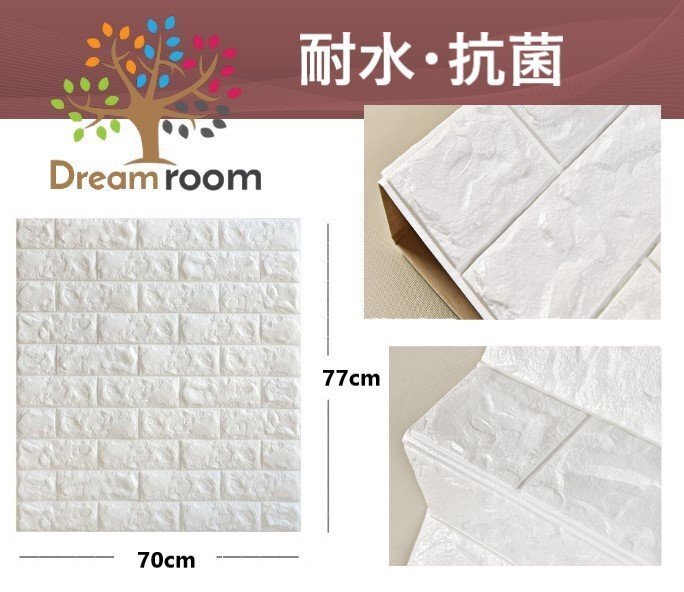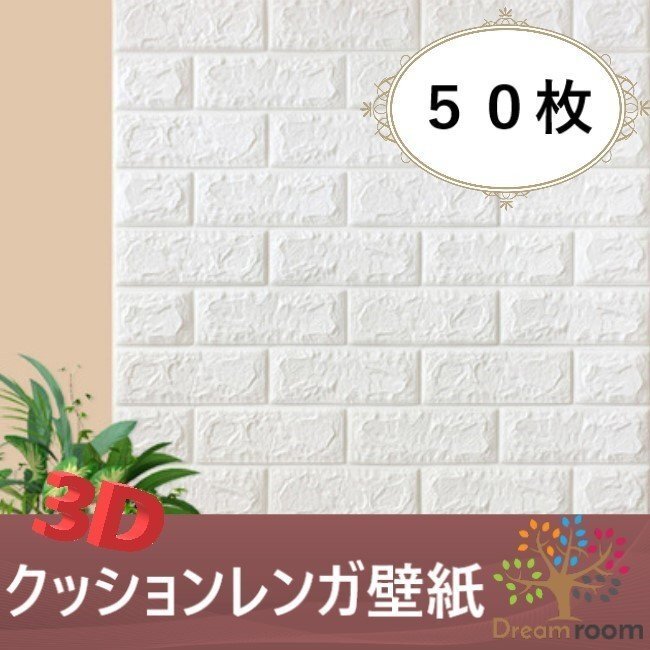 【50枚】高品質 3D クッション 壁紙シール ホワイト レンガ調 糊付き はがせる クロス 70×77cm アンティーク 耐水 抗菌 落書き 傷防止