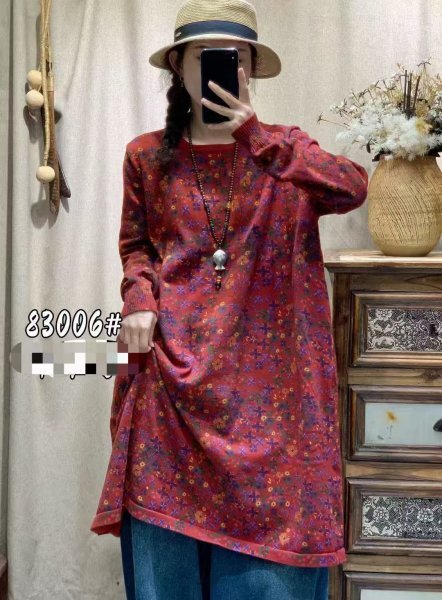 mn 2510 ニット セーター チュニック トップス ゆったり 綿100% ナチュラル 花柄2