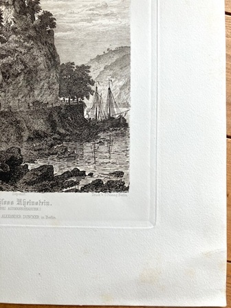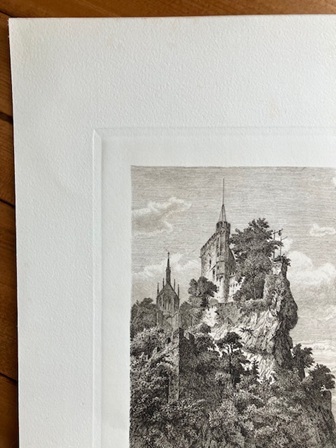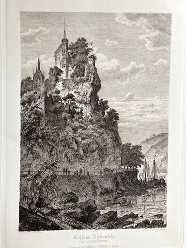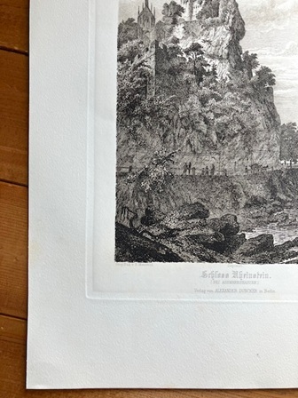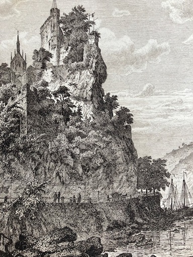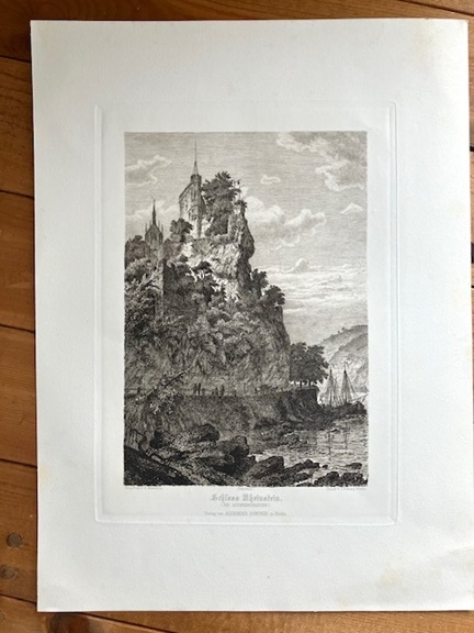 大判 アンティークプリント ドイツ ラインシュタイン城 ライン川