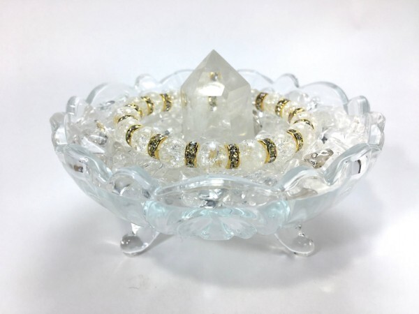 クラック水晶は、水晶の内部が重力によって破裂した後、さらに圧力が加わり奇跡的に再結晶したものです。中国では古来、邪気払い・開運の石として長く重宝されつづけてきました。クラック水晶が持つ力のひとつに、体内に潜む邪気を外へ吐き出す働きがございます。持ち主の邪気を吸収するたびにクラック(亀裂)消えていくとも言われており、実際に身に着けているうちにクラックが消え、最終的に普通の水晶になったとの報告もあるそうです。