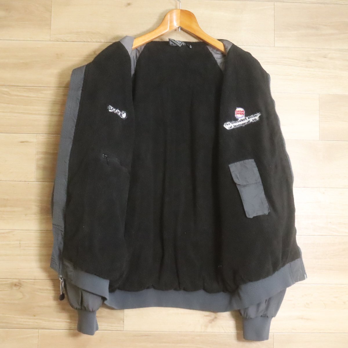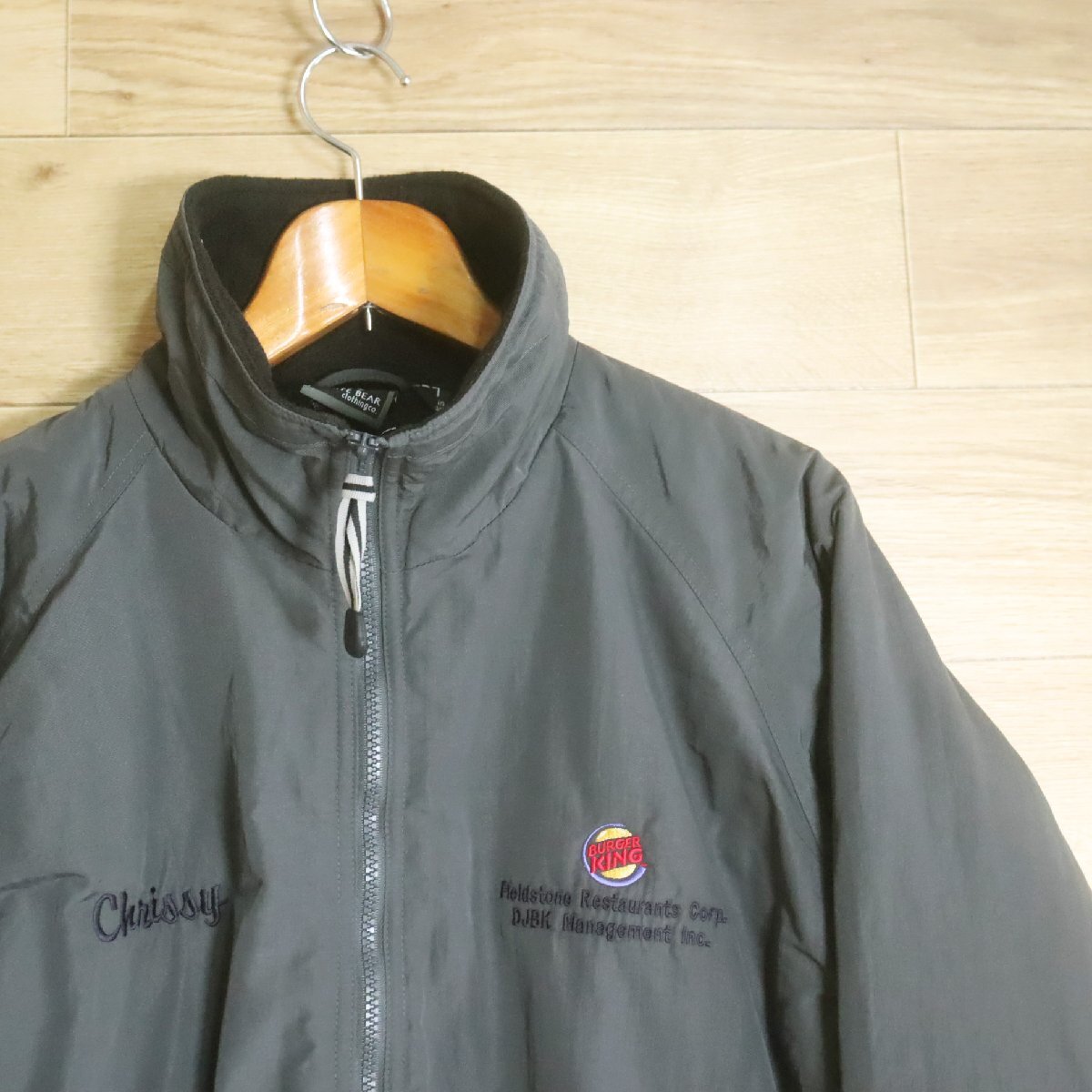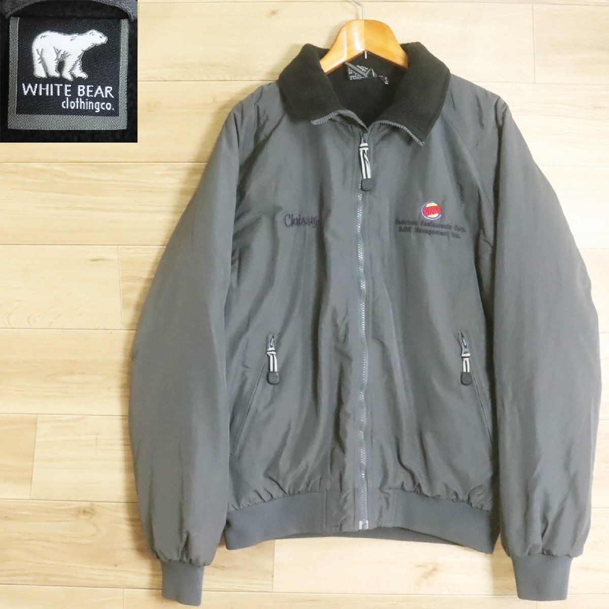 Y2R/R7.21-3 WHITE BEAR ナイロンジャケット 裏フリース ブルゾン ジャンパー ジップアップ 企業刺繍 M グレー アメリカ古着